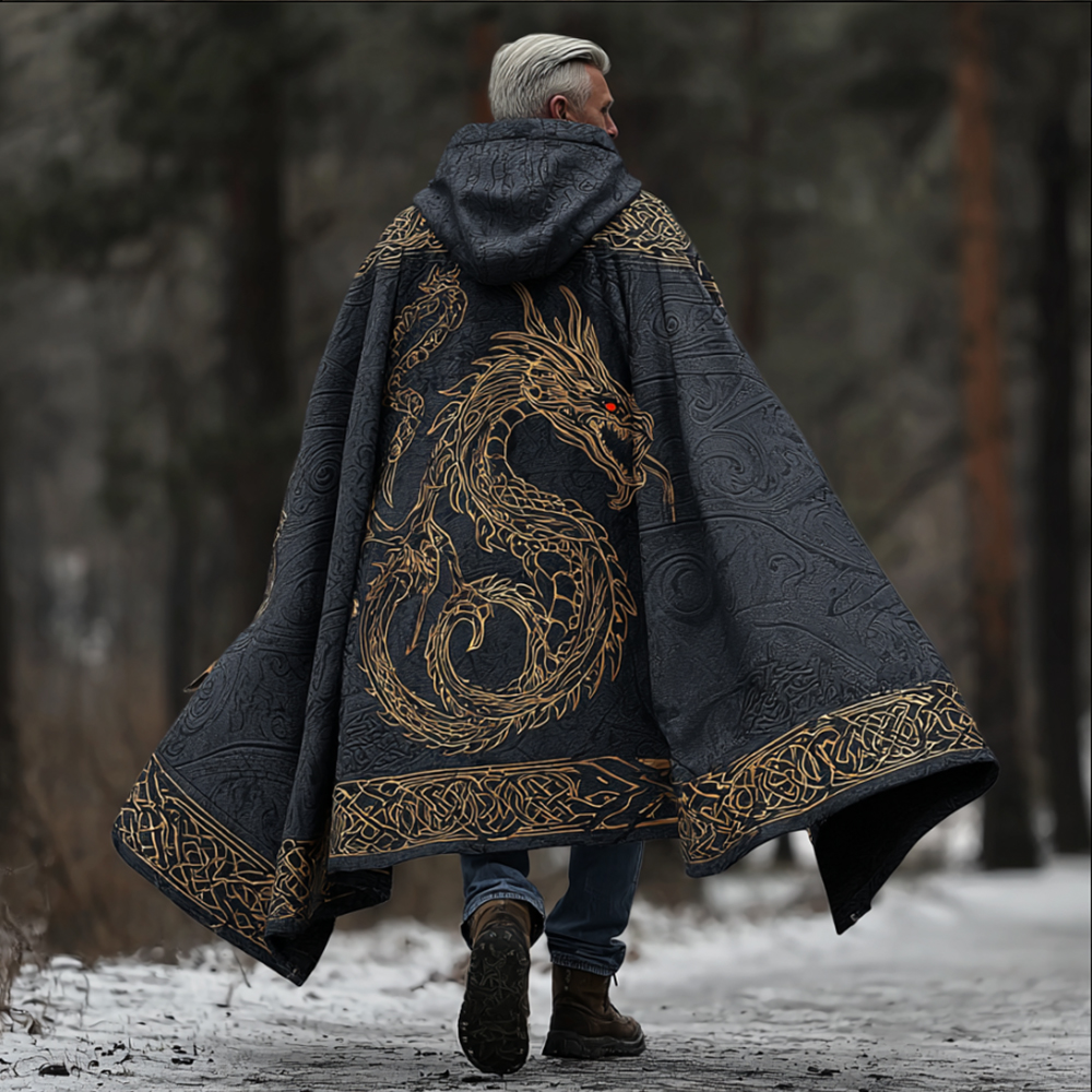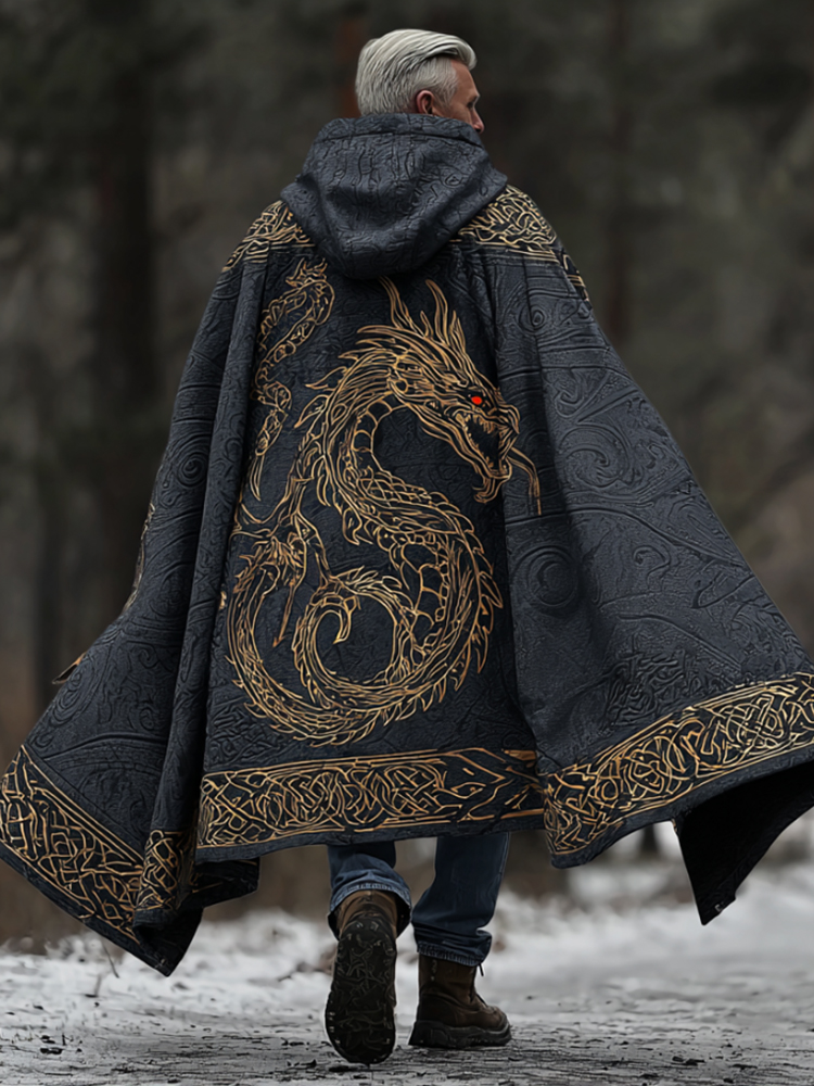 Men's Viking Style Celtic Knot Gold Dragon Print Cape