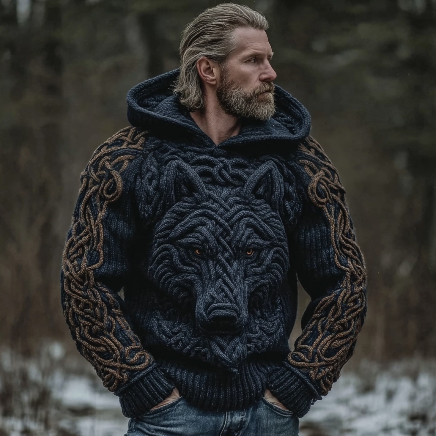 Men's Viking-style Winter Warm Hooded Knitted Sweater