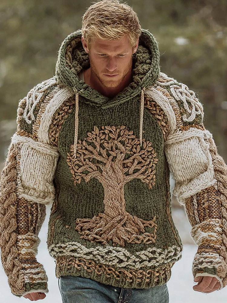 Men's Viking Tree Of Life Celtic Knot Art Knit Hooded Sweater