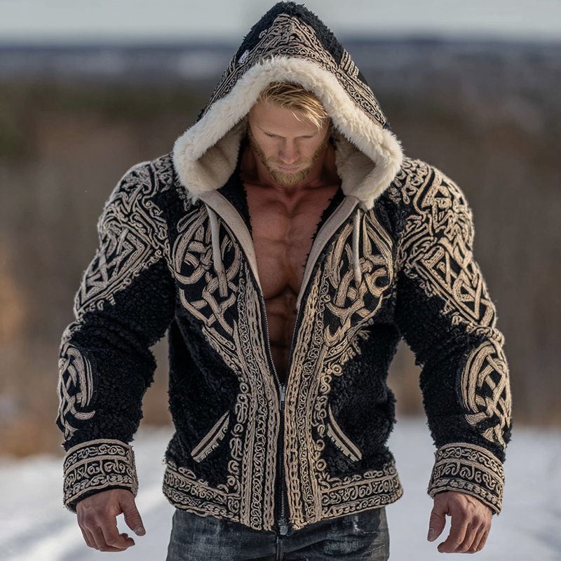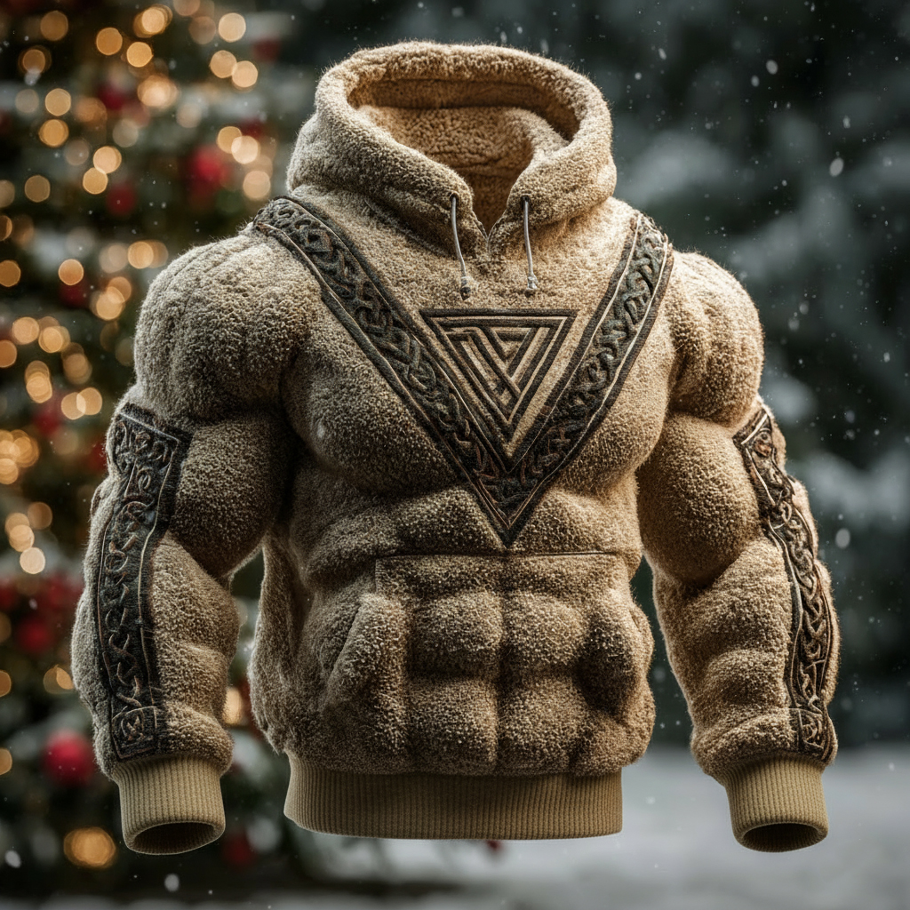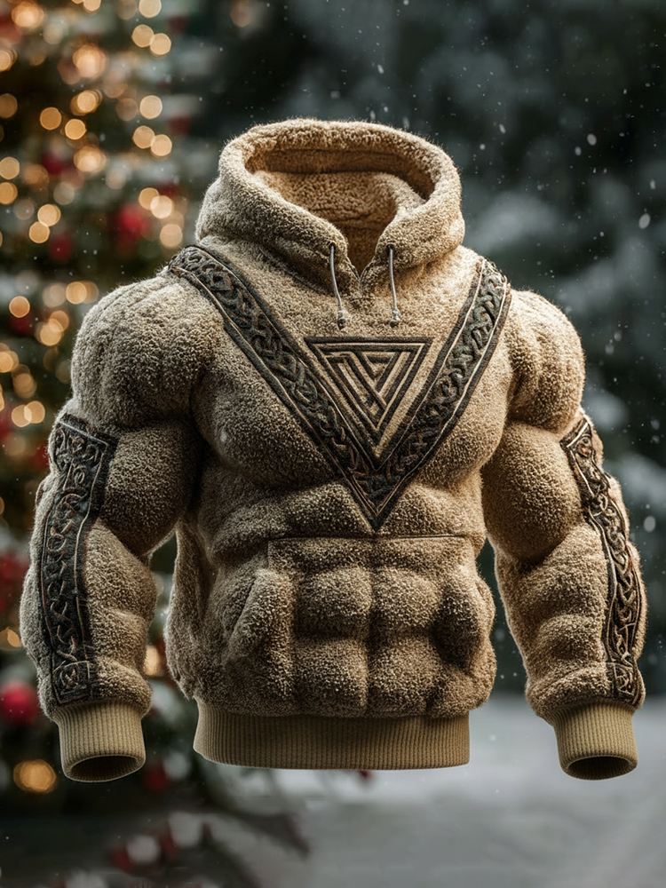 Men's Retro Viking Rune And Muscular Artistic Plush Warm Hoodie