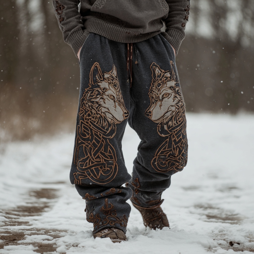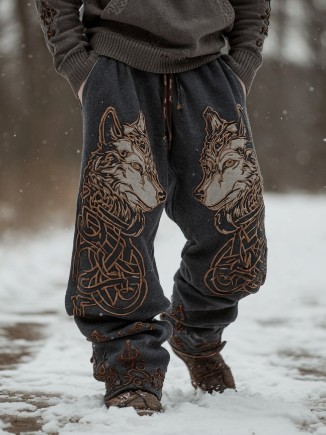 Men's Viking Tribal Wolf Celtic Knot Pattern Art Cozy Knit Pants