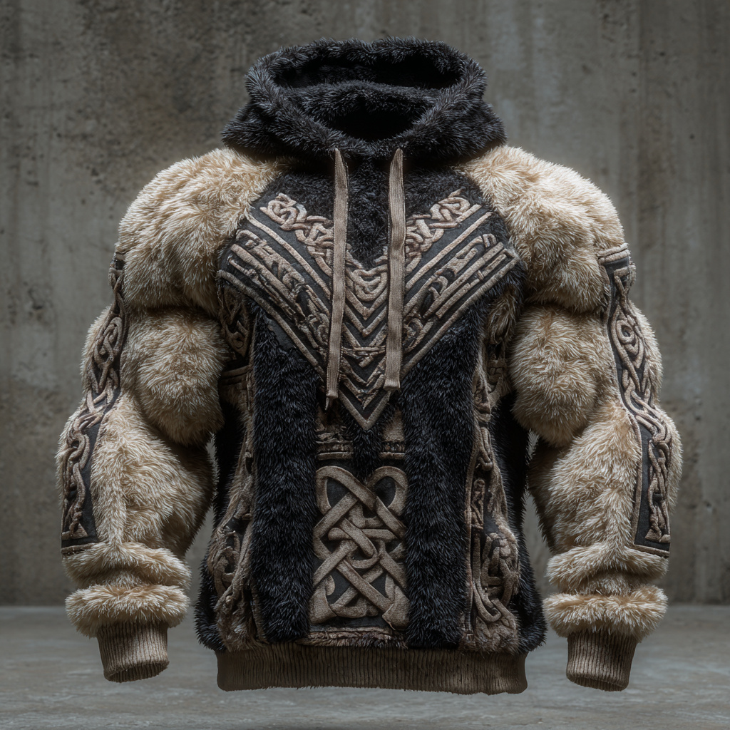 Men's Vintage Viking Tribal Jacquard Celtic Art Plush Warm Hoodie