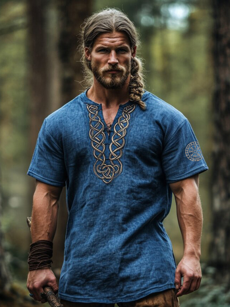 Men's Vintage Viking Celtic Knot Art Linen Shirt