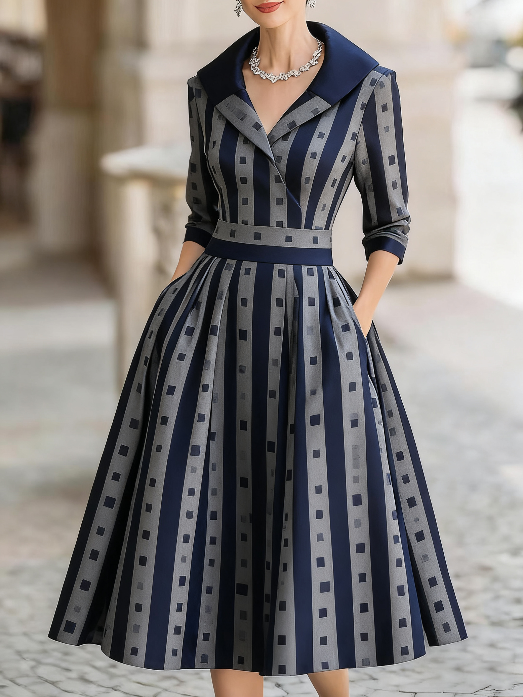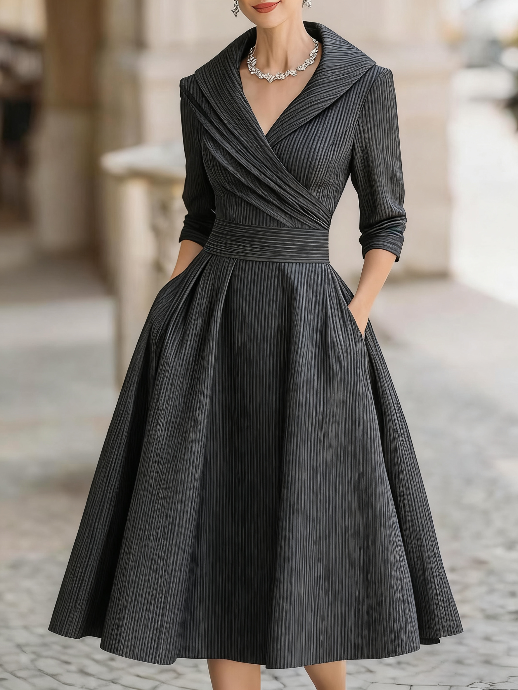 Elegant Long-sleeved Shirt-style Tie Maxi Dress