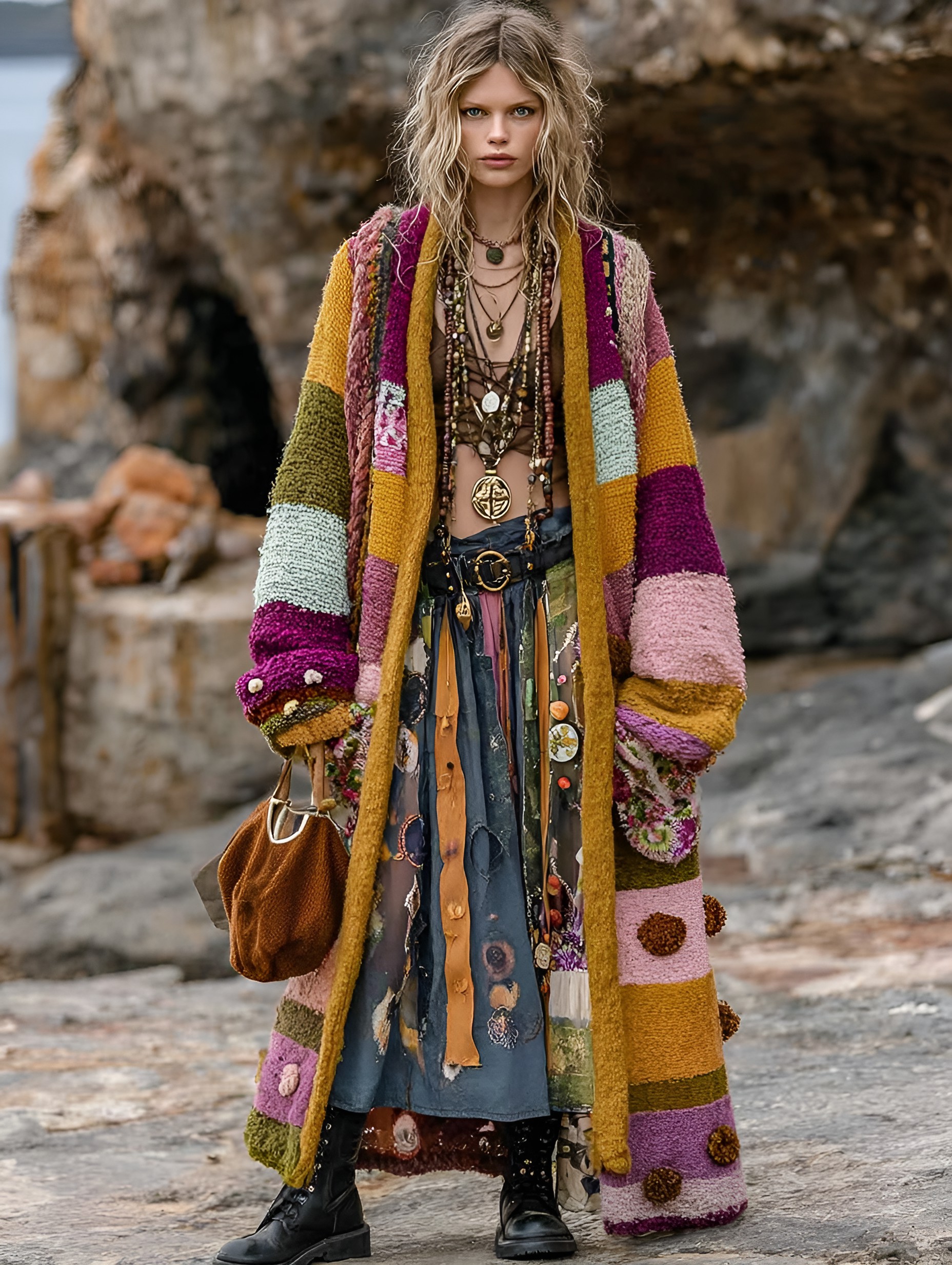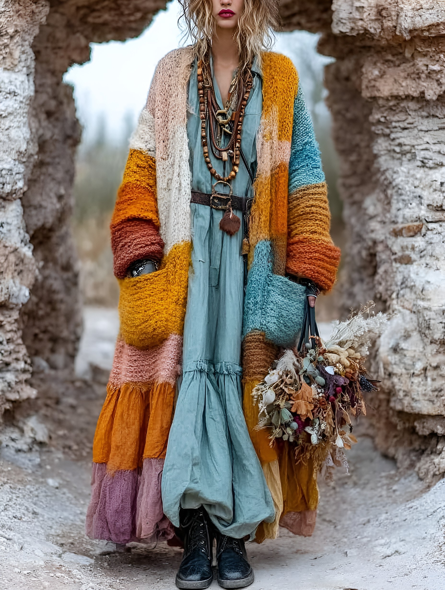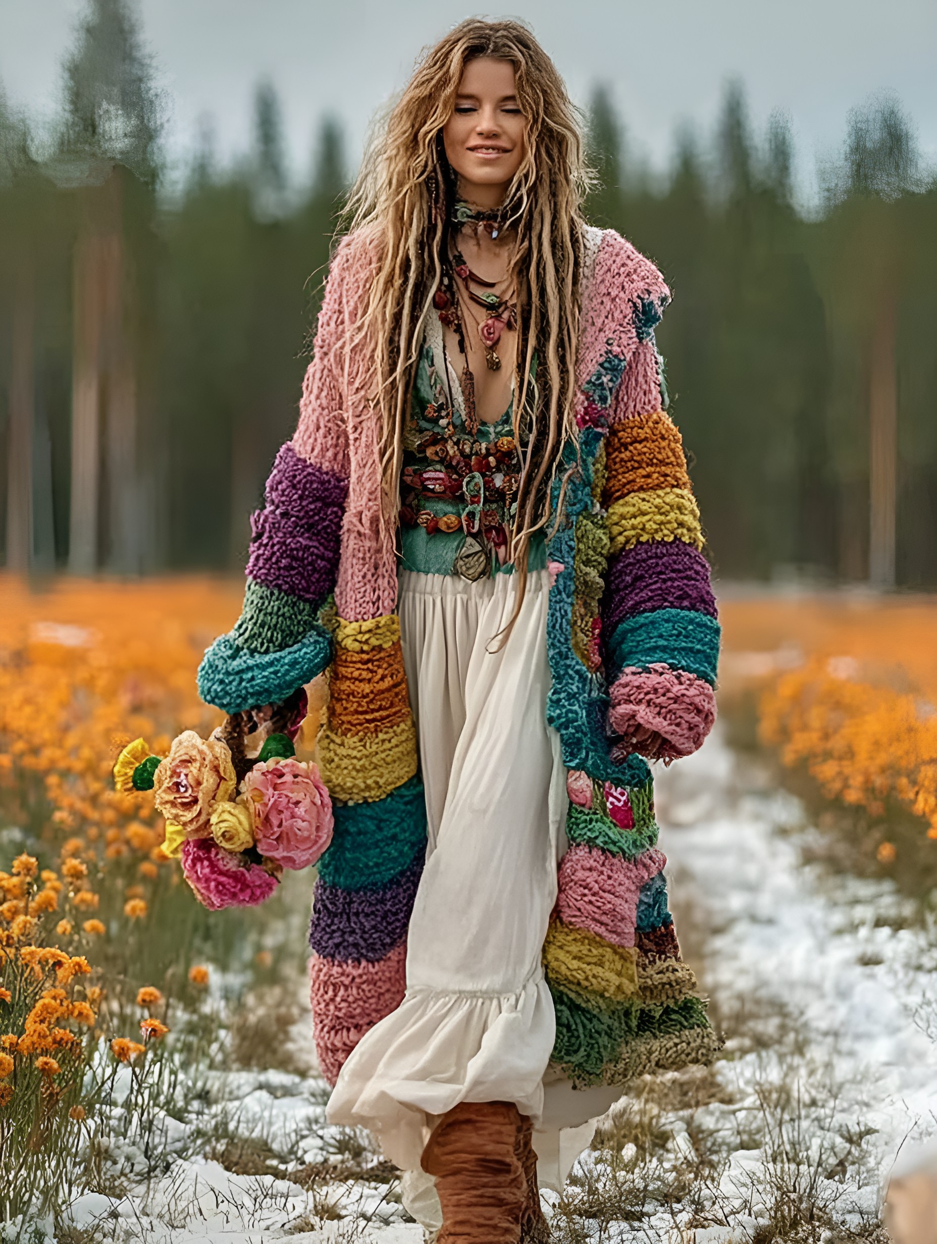 Women's Colorful Rainbow Patchwork Pattern Print Cardigan