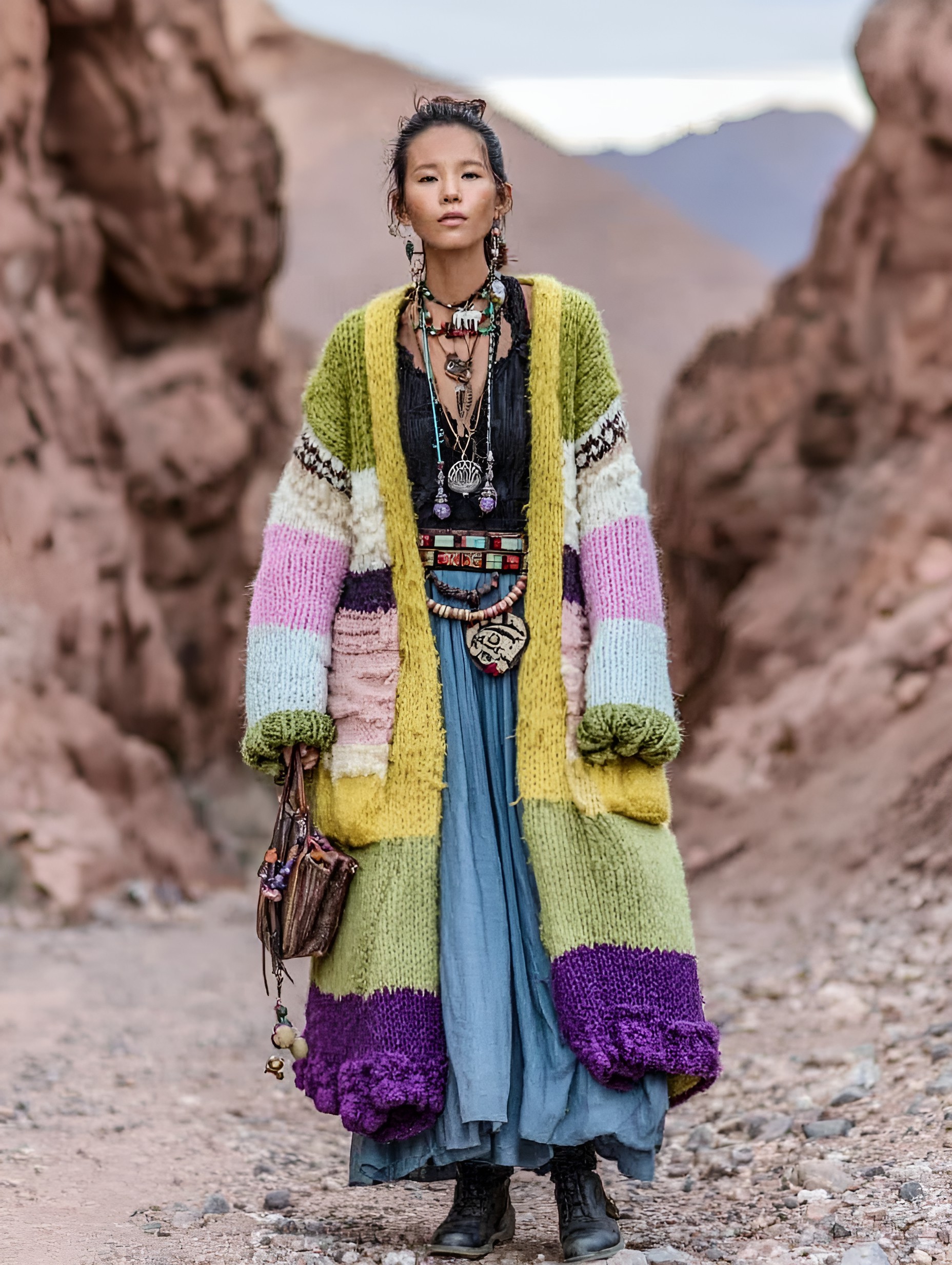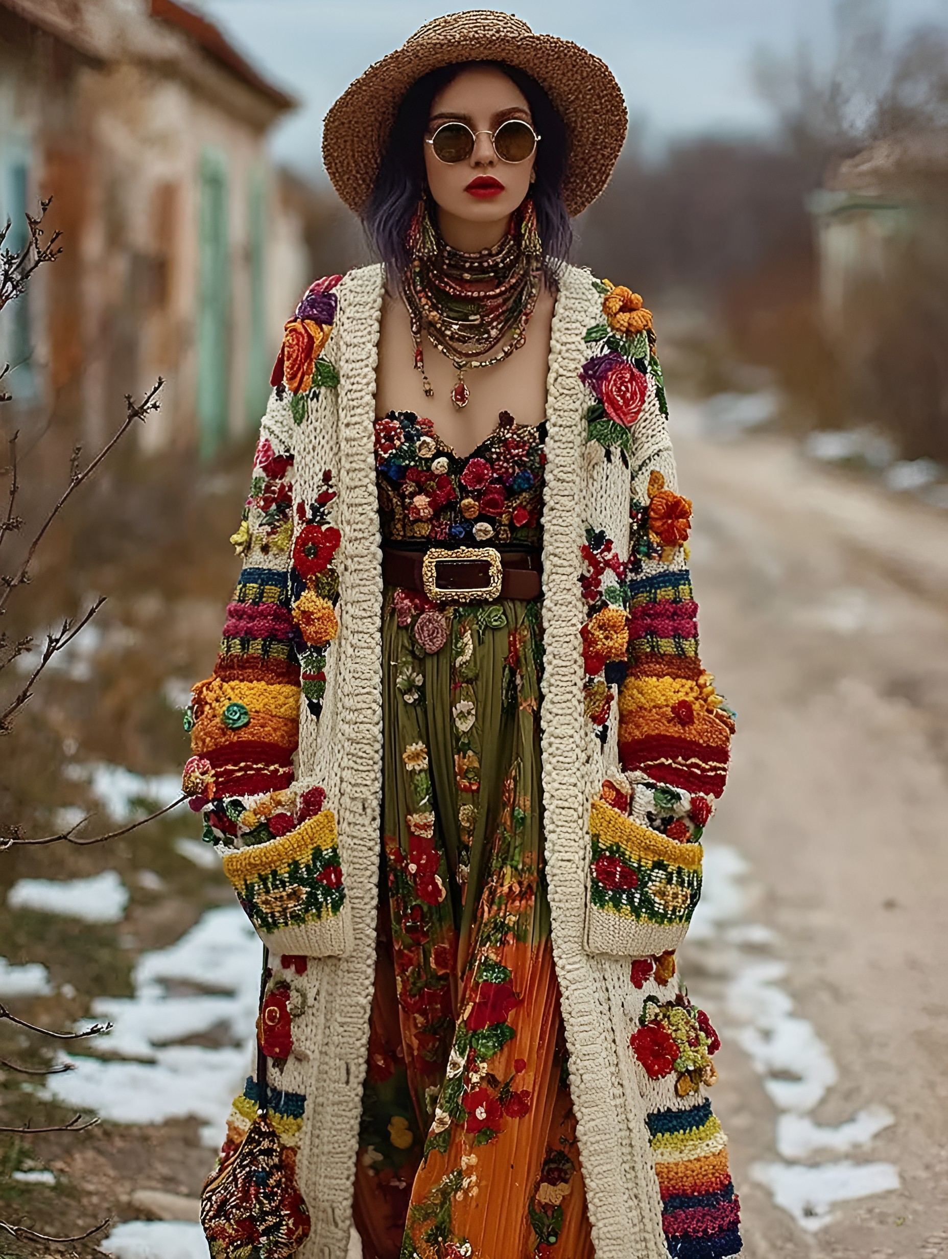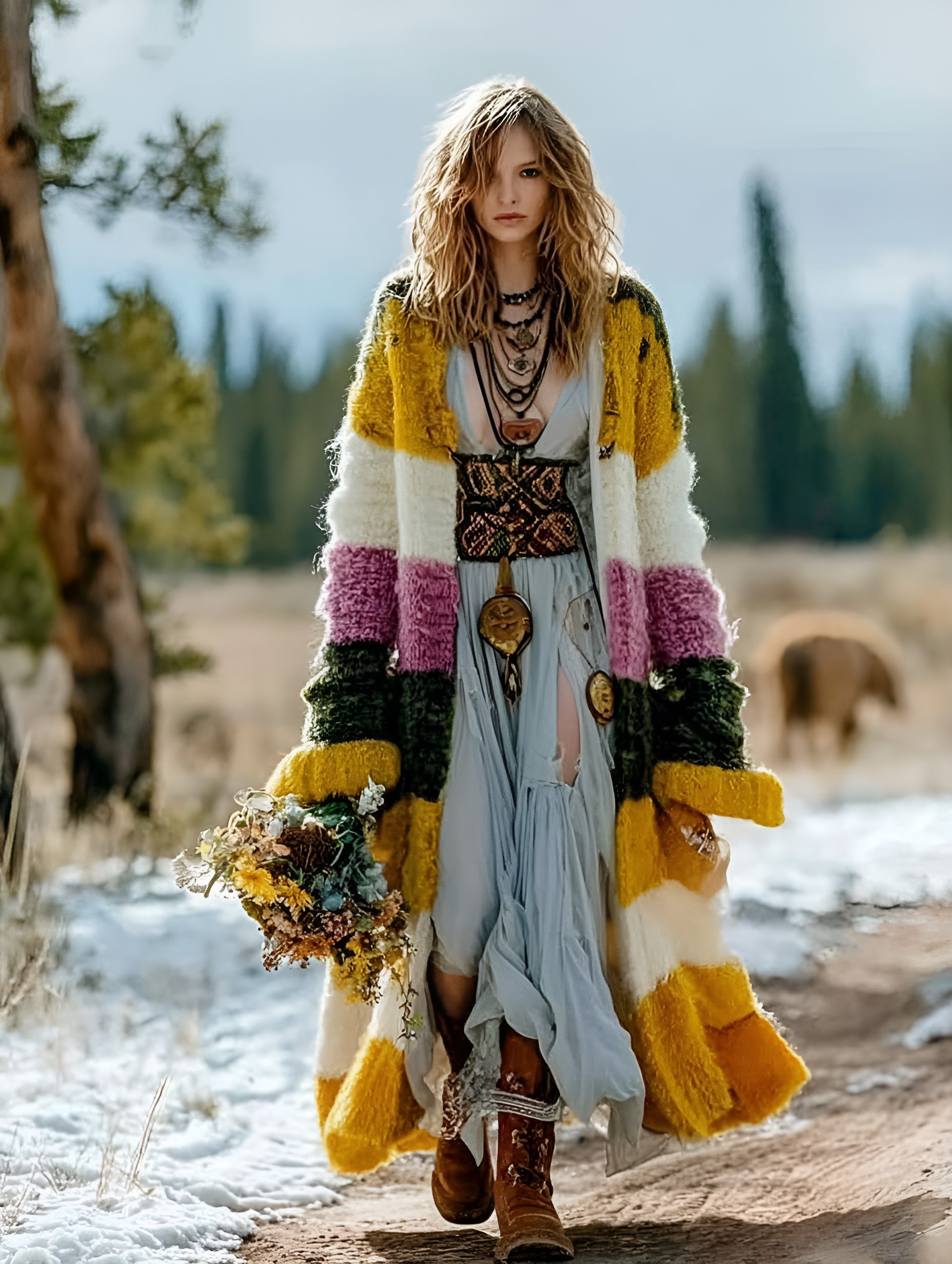 Women's Colorful Rainbow Patchwork Pattern Print Cardigan
