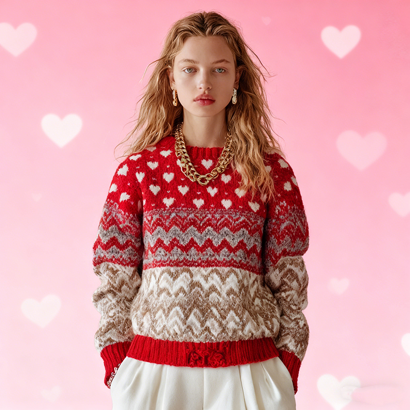 Women's Valentine's Day Heart Pattern Comfortable Knit Sweater