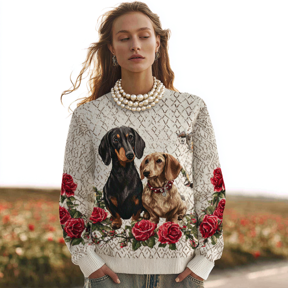 Valentine's Day Sausage Dog And Rose Turtleneck Sweater