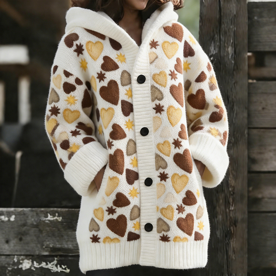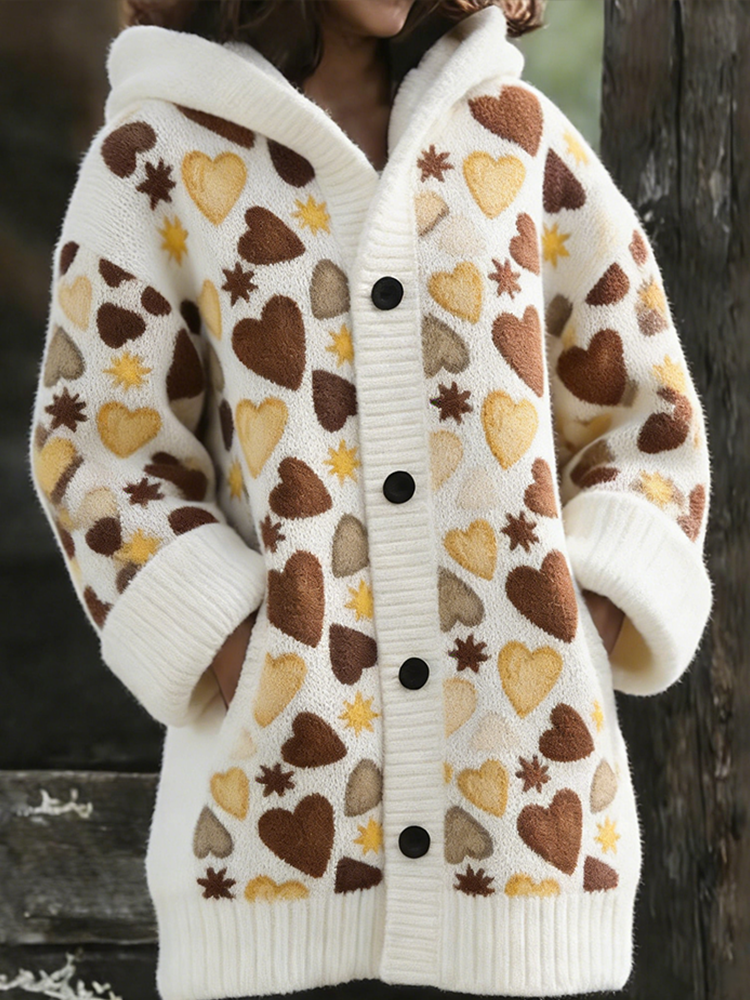 Valentine's Day Love Heart Pattern Women's Sweater Coat