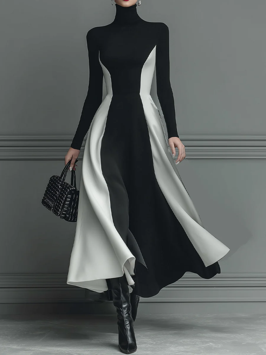 Black And White Stitching Knitted Maxi Dress
