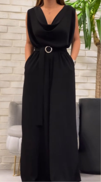 Bright Yellow Drape Comfortable Blended Maxi Dress