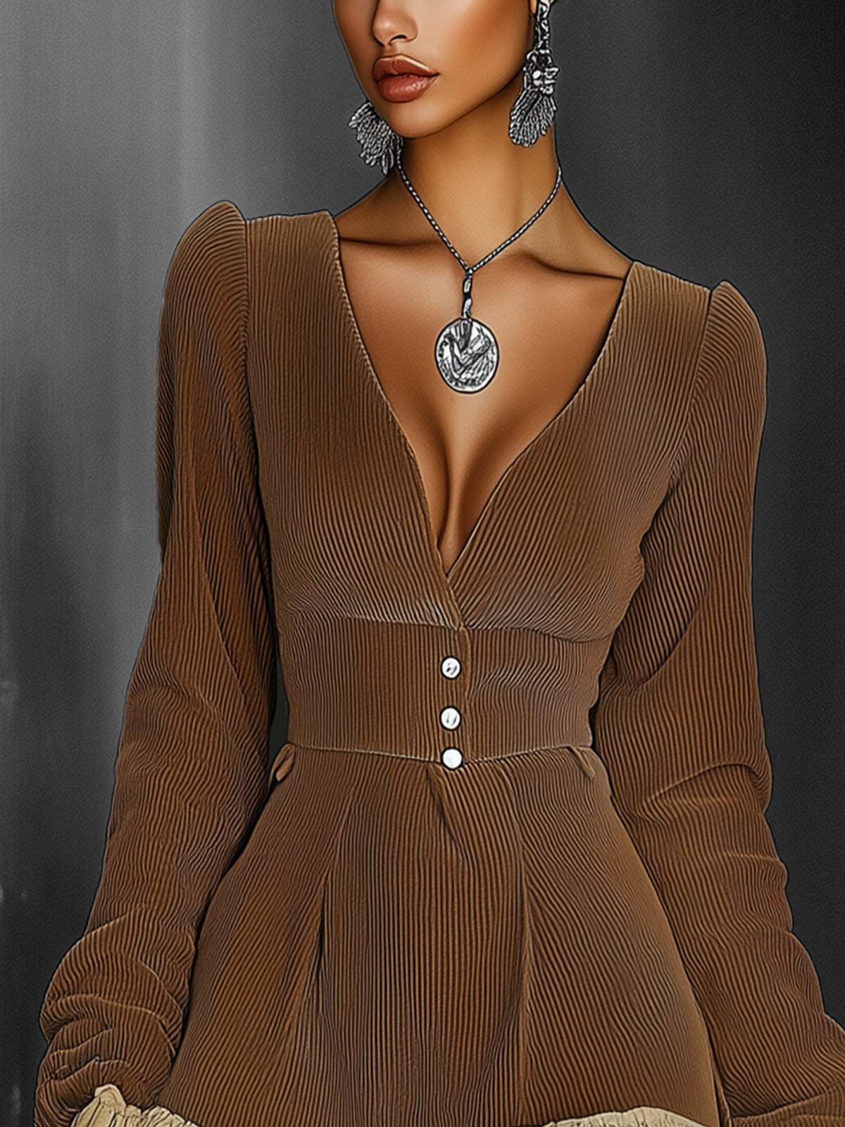 Brown Hooded Sweatshirt Jumpsuit With Leopard Print