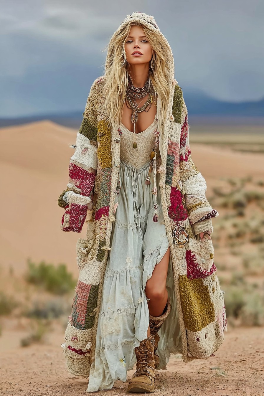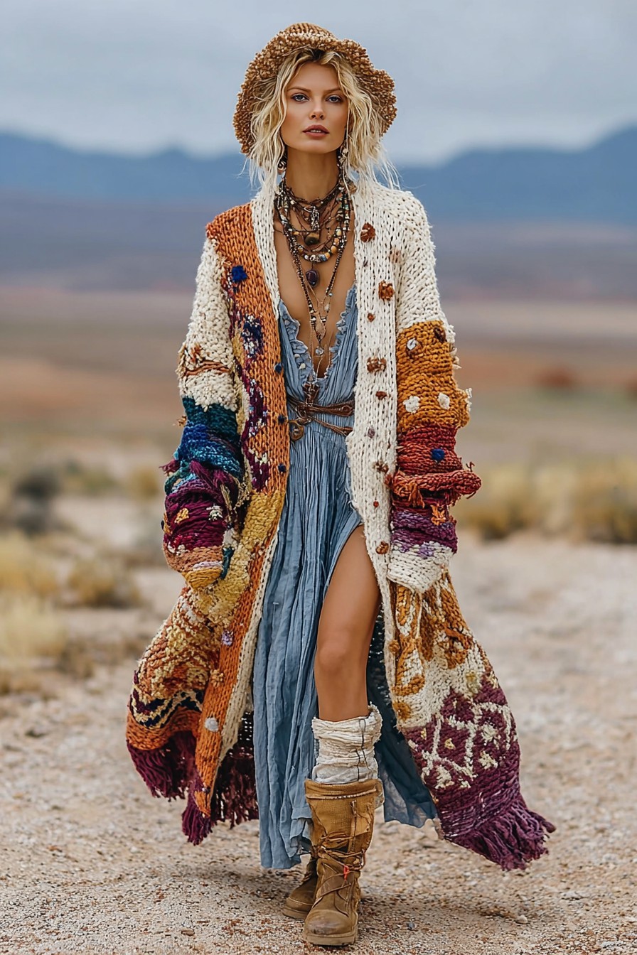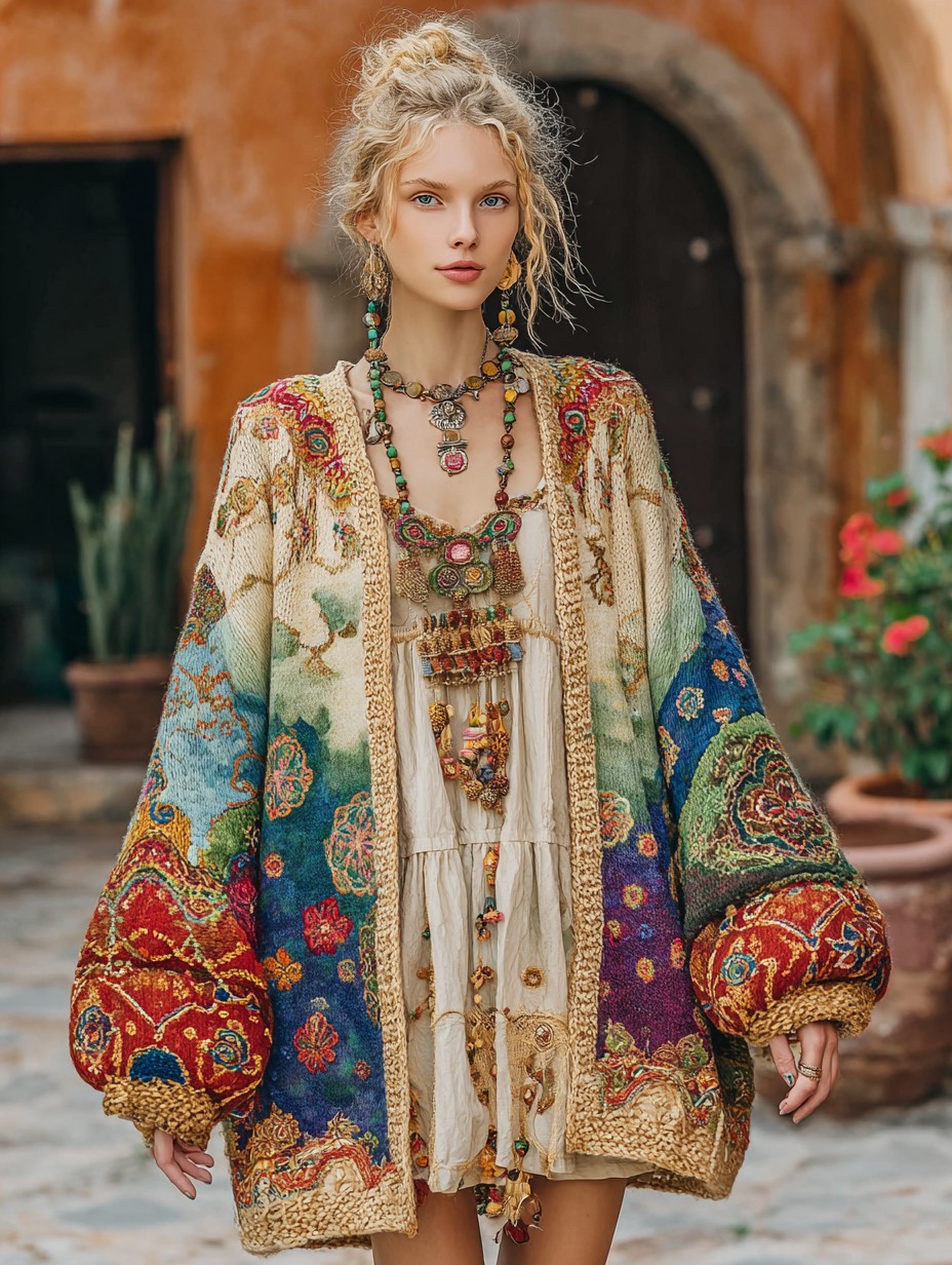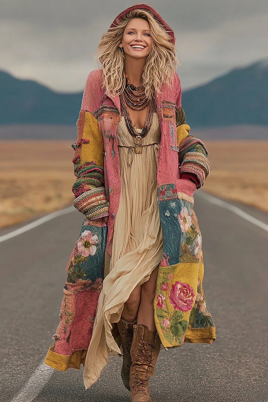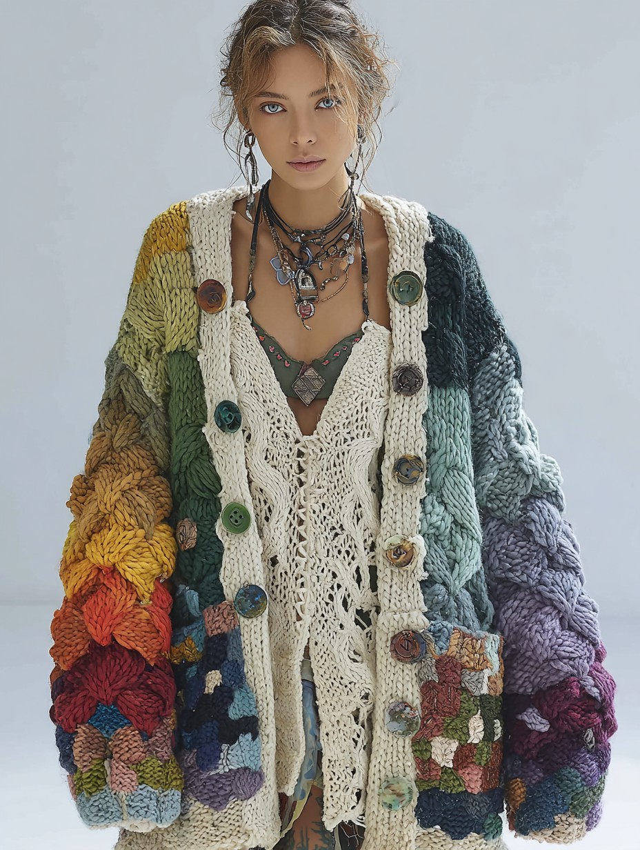 Women's Colorful charm pattern knitted medium and long cardigan
