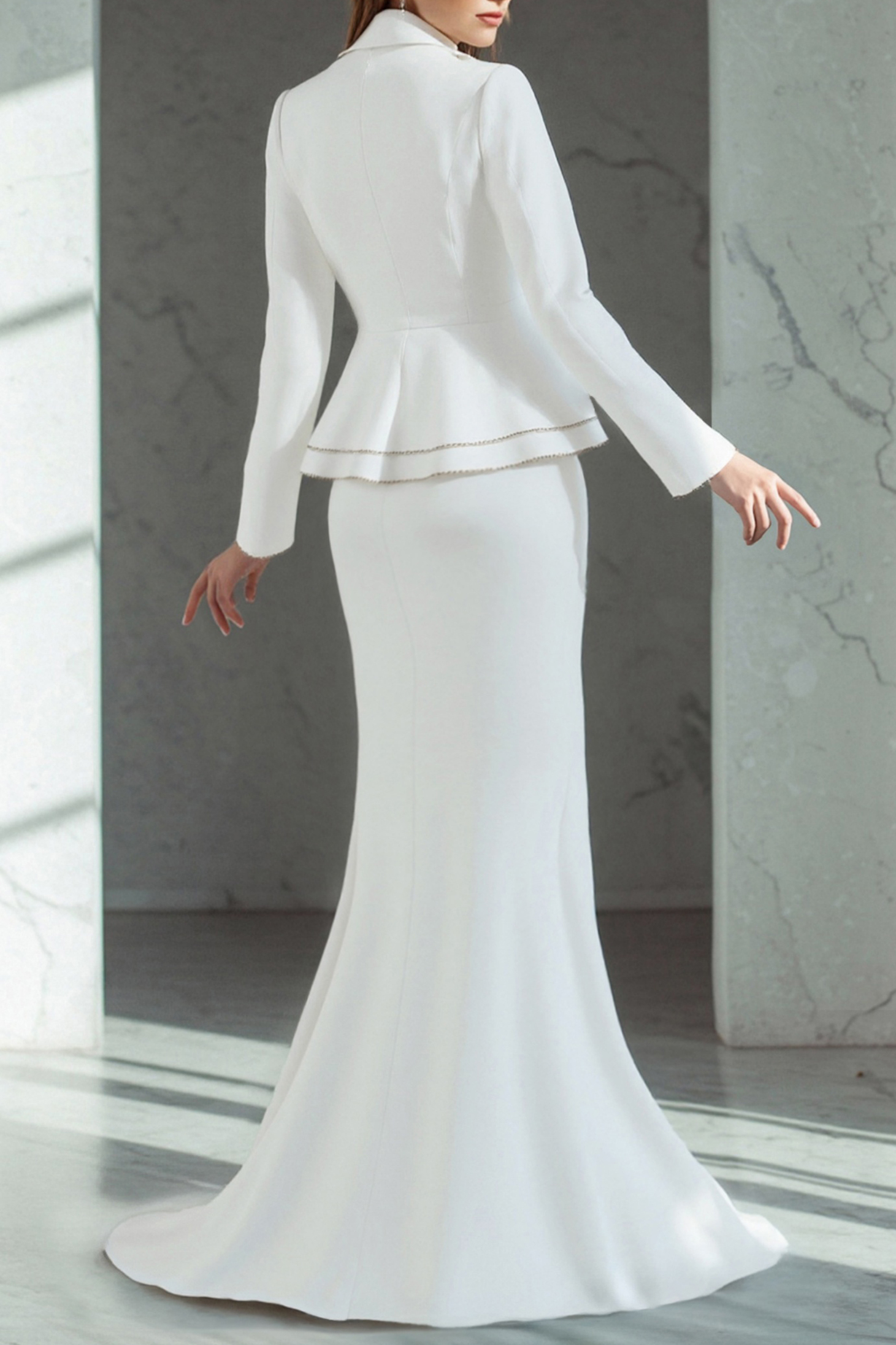Business Skirt Set White Long Sleeve Slit Mermaid Dress