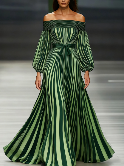 Women's off-the-shoulder long-sleeved green chiffon dress