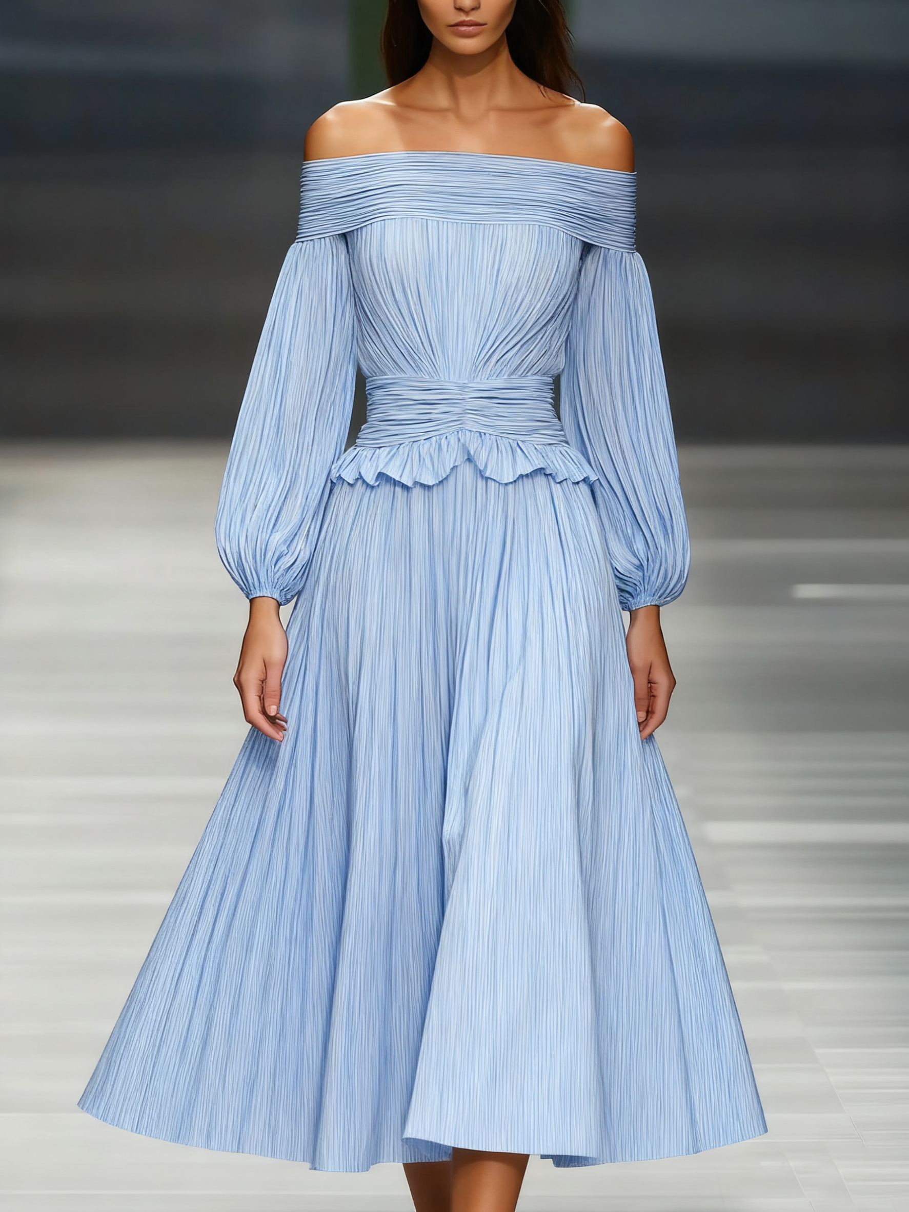 This off-shoulder long sleeve chiffon maxi dress is perfect for those seeking a blend of elegance and romance. Its timeless design and beautiful green hue make it a standout piece for special occasions.