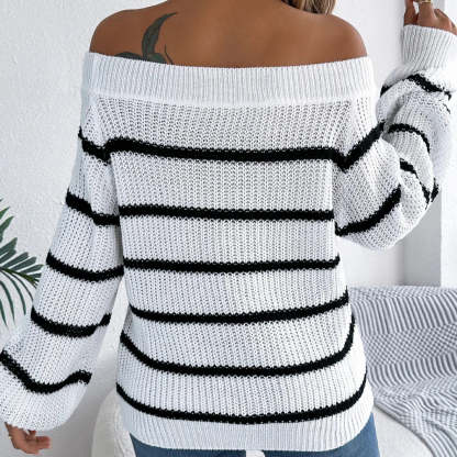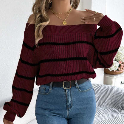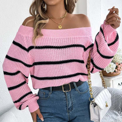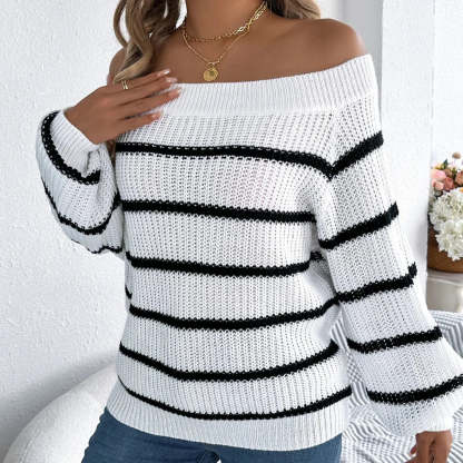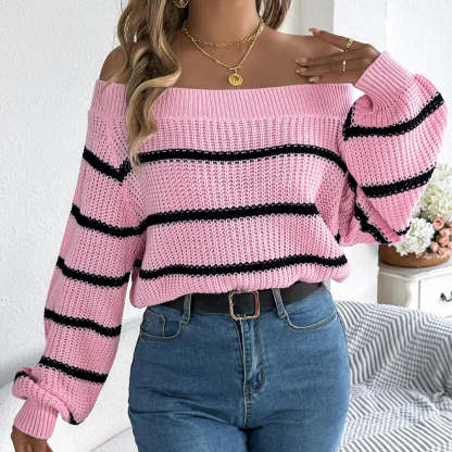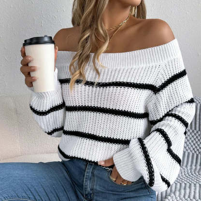 Belle | Women’s striped off shoulder knitted sweater