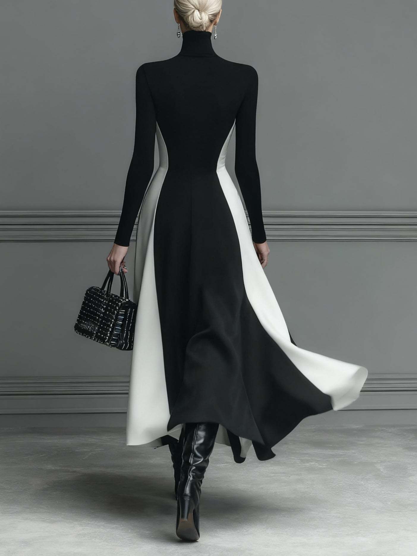 Black And White Stitching Knitted Maxi Dress