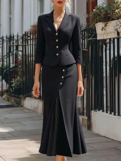 Elegant button-down blazer and midi skirt set