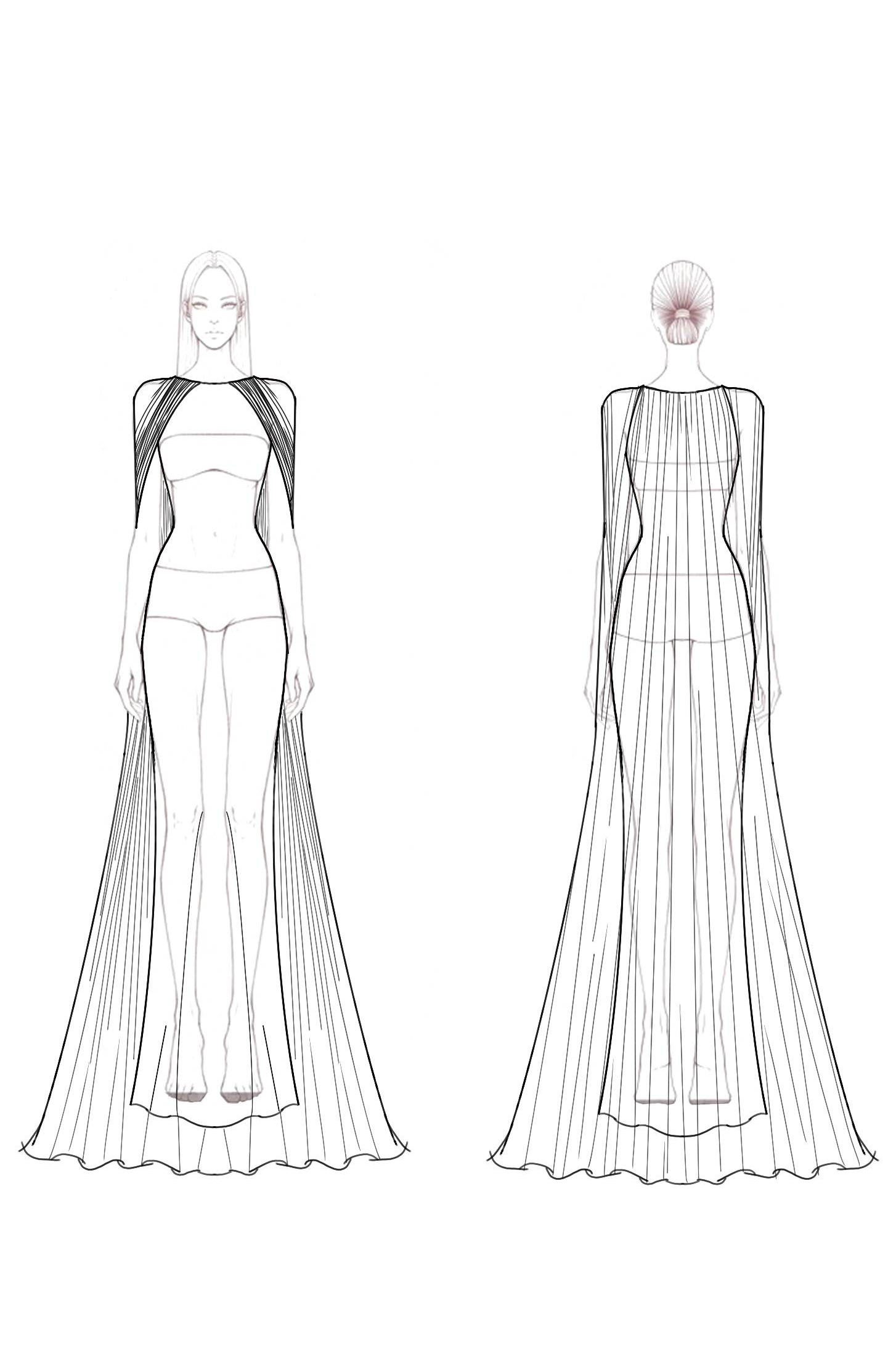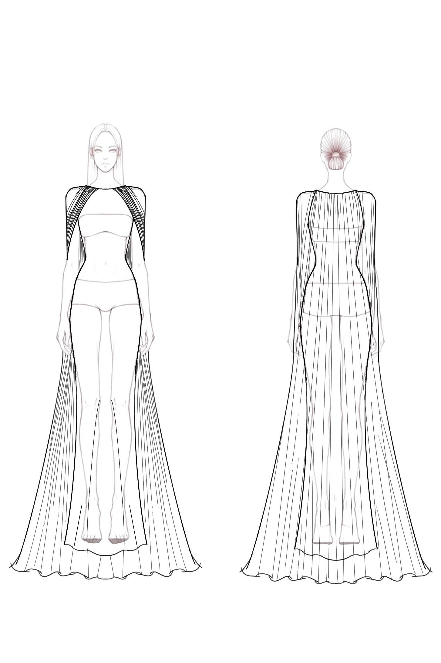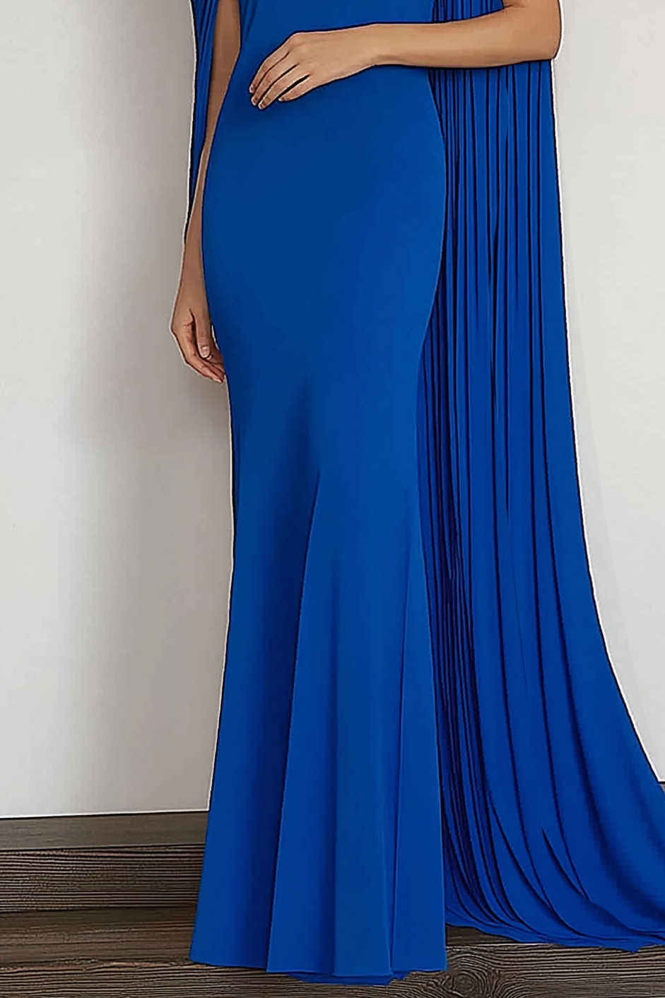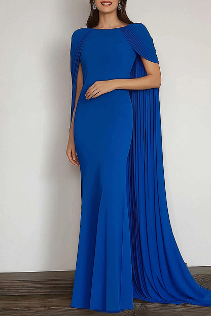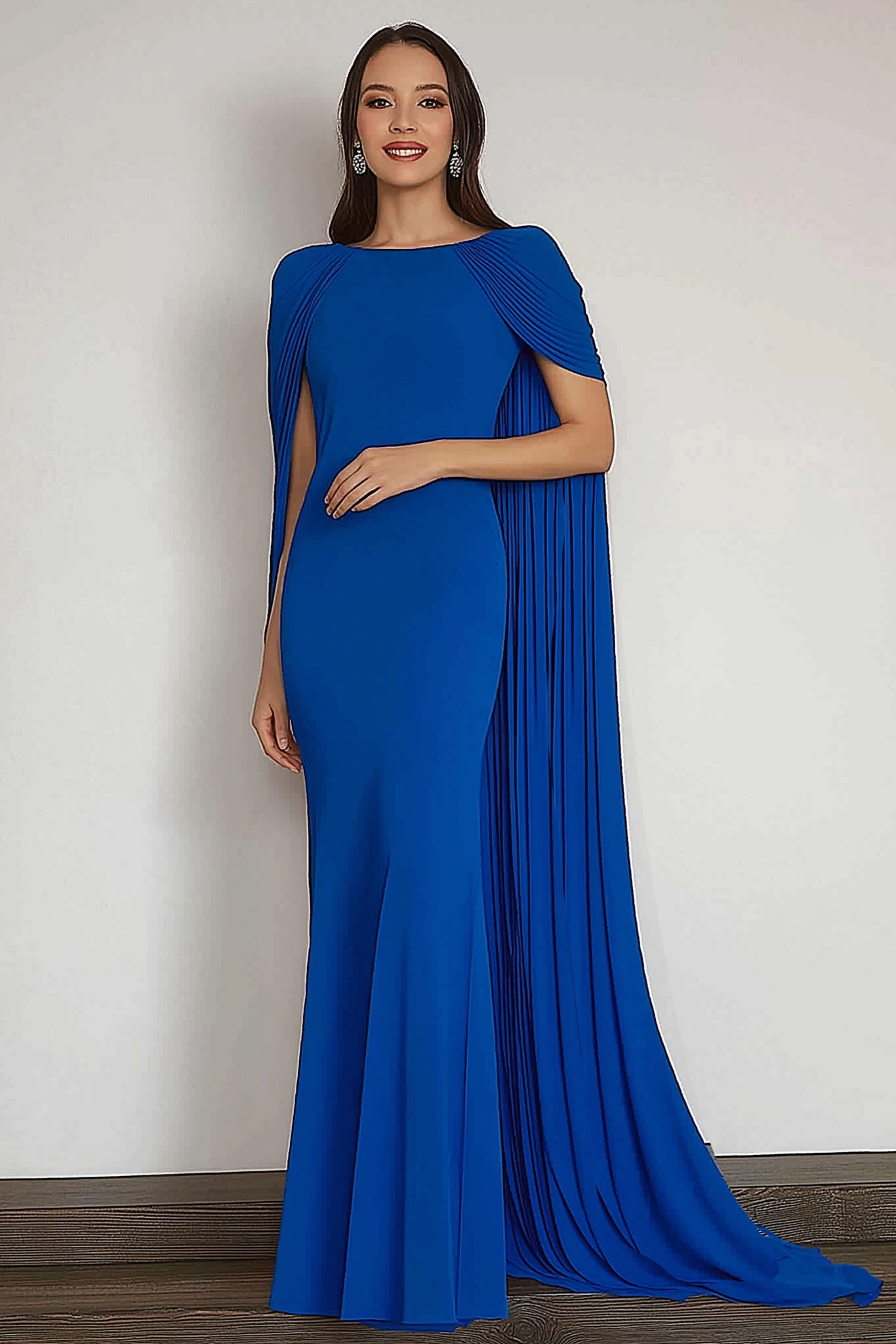 Evening Formal Dress Blue Crew Neck Cape Mermaid Maxi Gown