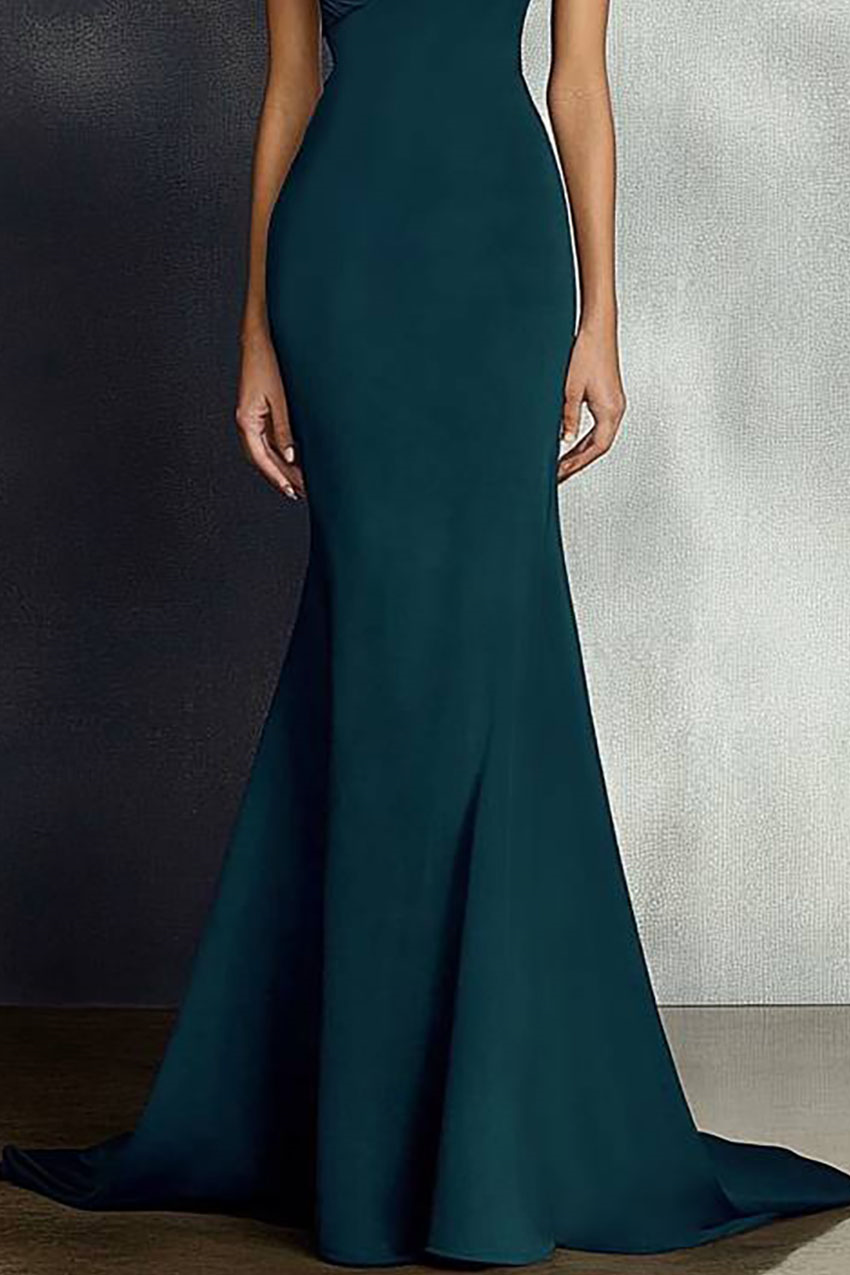 Evening Formal Dress Dark Green One-Shoulder Mermaid Train Dress