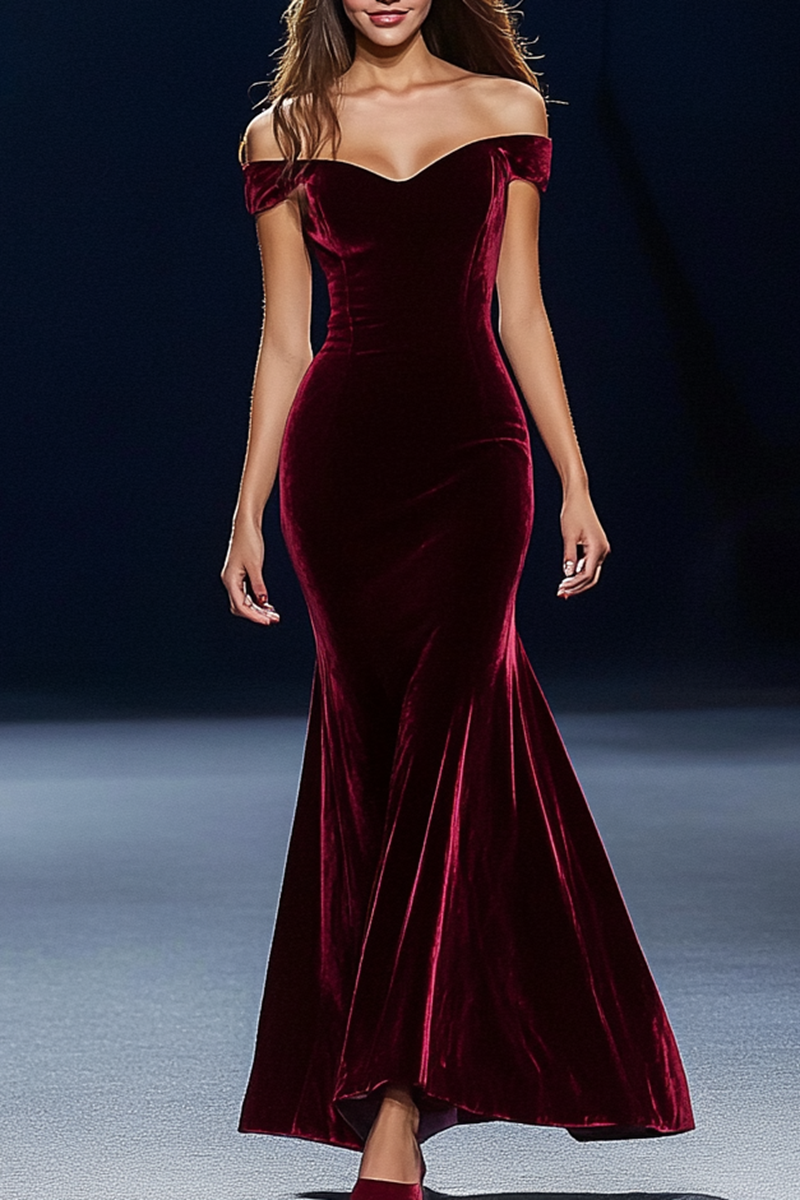 Make a grand entrance with this captivating Evening Velvet Red Dress. Designed in a stunning off-shoulder style, this maxi mermaid gown hugs your curves and flows elegantly to the floor, creating a dramatic and sophisticated silhouette. The luxurious velvet fabric enhances the rich red tone, making it the perfect choice for formal events, galas, or special occasions. Pair it with sparkling jewelry and heels for a timeless and unforgettable look that radiates elegance and confidence.