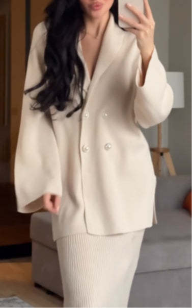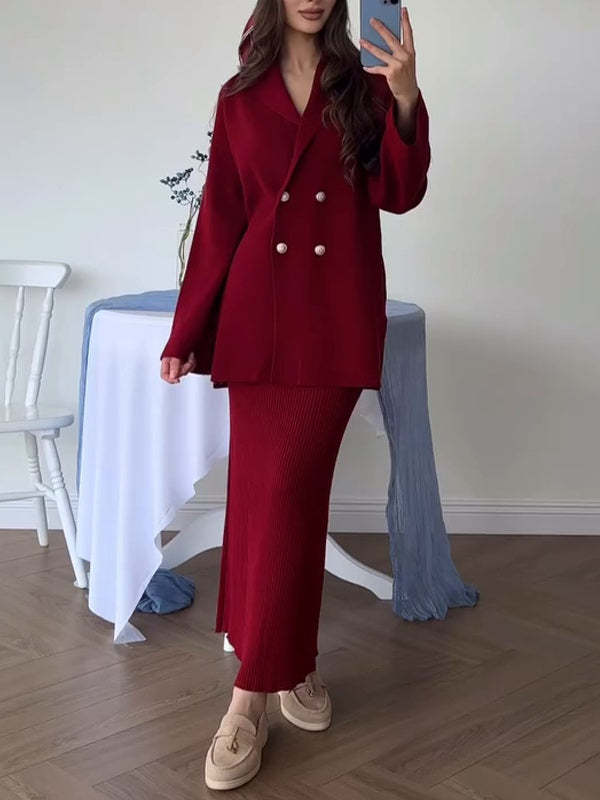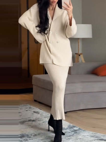 Fashion button long sleeve solid color skirt set