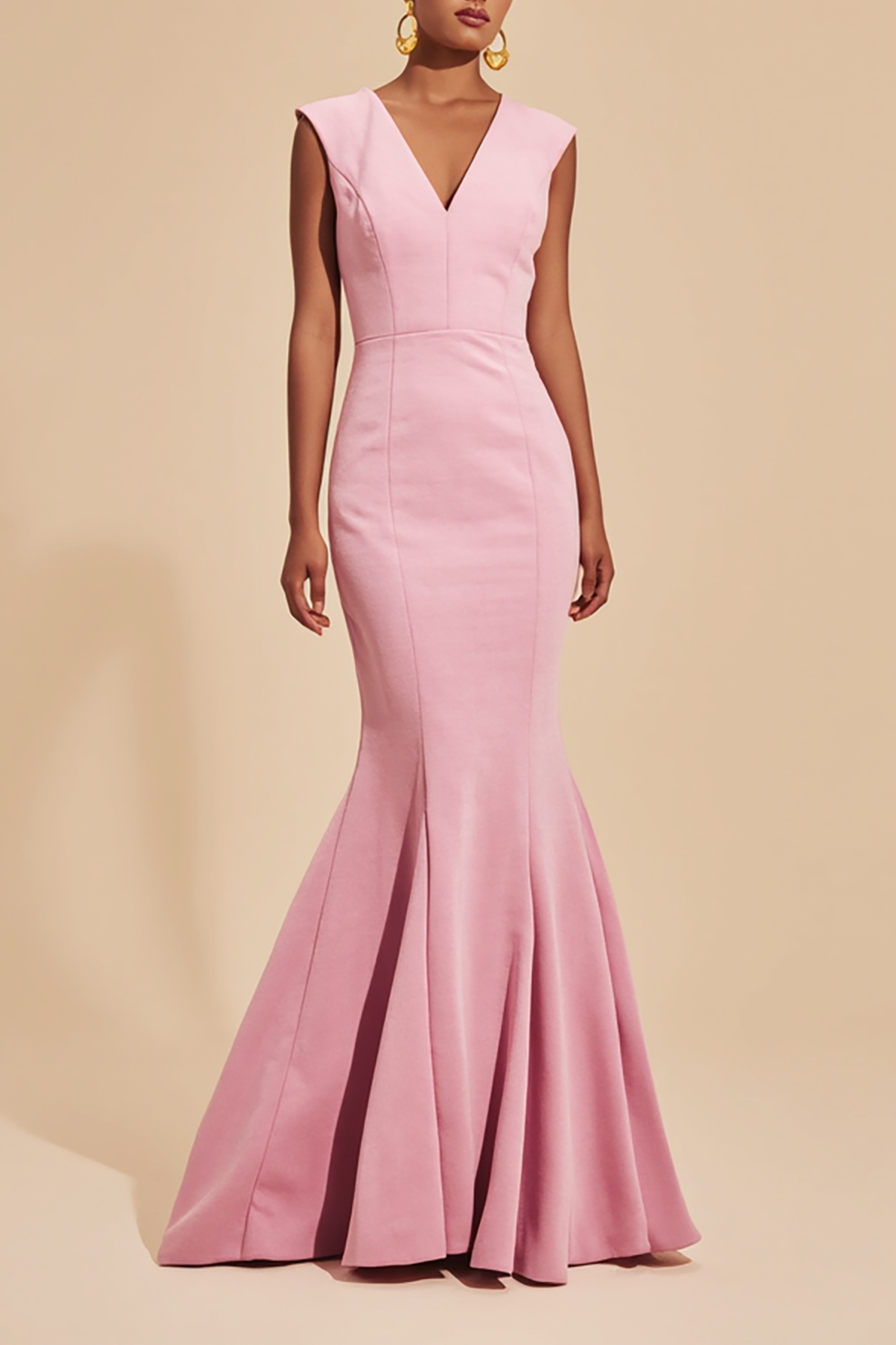 Formal Evening Dress Light Pink V Neck Sleeveless Mermaid Maxi Dress