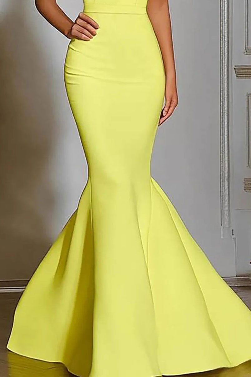 Formal Evening Dress Yellow Sleeveless V-Neck Mermaid Maxi Gown