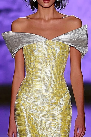 Make a graceful statement in this Yellow and White Off-The-Shoulder Maxi Gown, designed for formal events and elegant occasions. The off-the-shoulder neckline adds sophistication, while the colorblock design enhances a modern, stylish silhouette. Crafted from high-quality fabric, this floor-length gown offers comfort and timeless elegance, perfect for weddings, galas, and upscale evening gatherings.