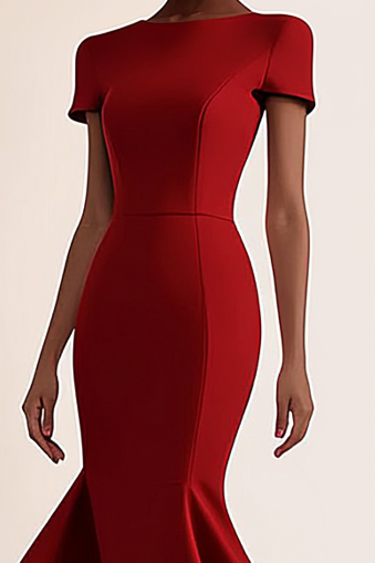 Step into elegance with this Red Crew Neck Mermaid Maxi Evening Dress, tailored to flatter every curve. The classic crew neckline offers understated sophistication, while the fitted mermaid silhouette creates a timeless, feminine shape. Perfect for weddings, galas, and formal evenings, this striking red gown ensures you stand out with poise and confidence at any special event.