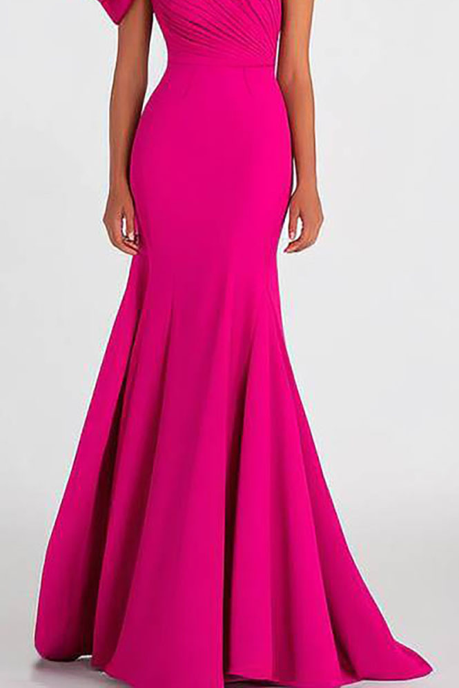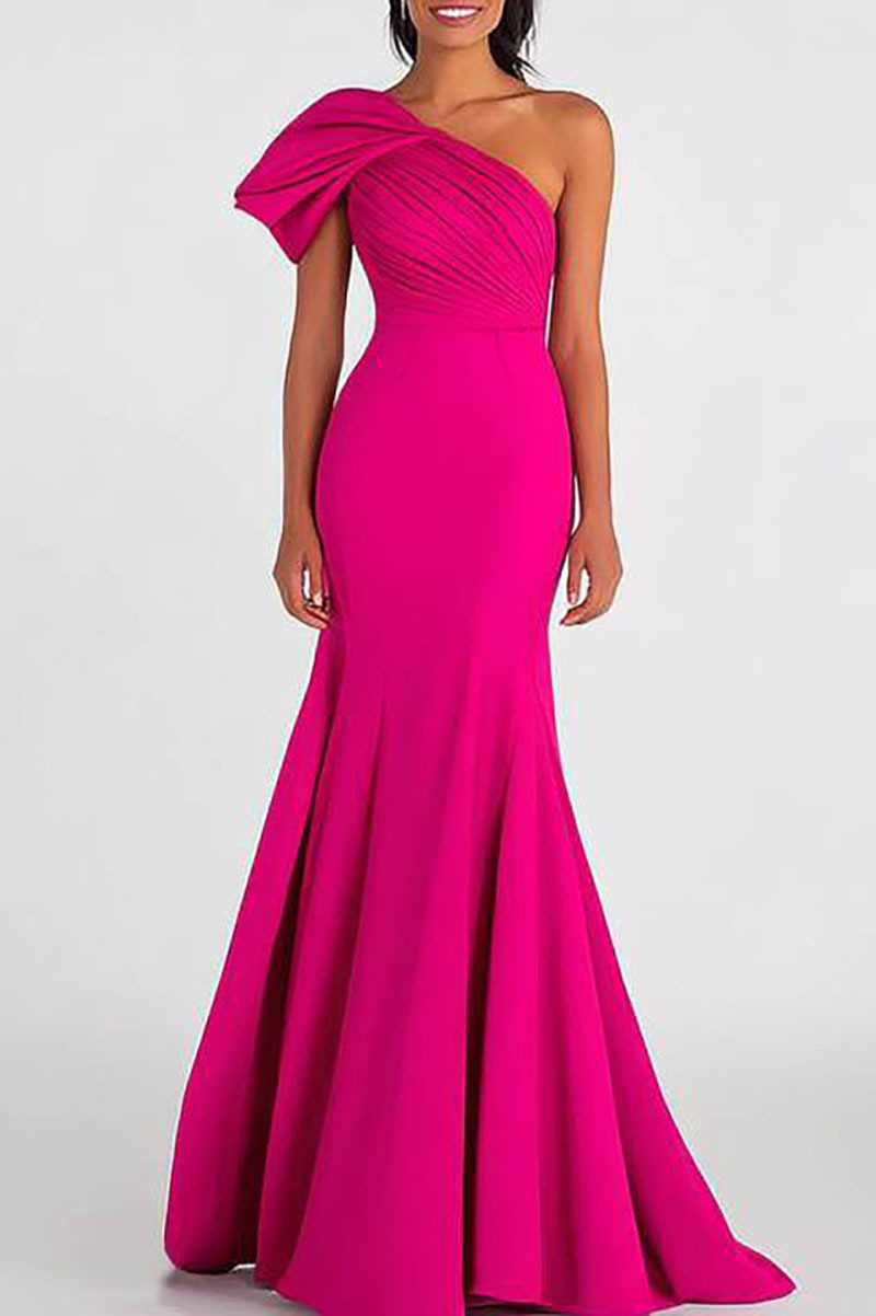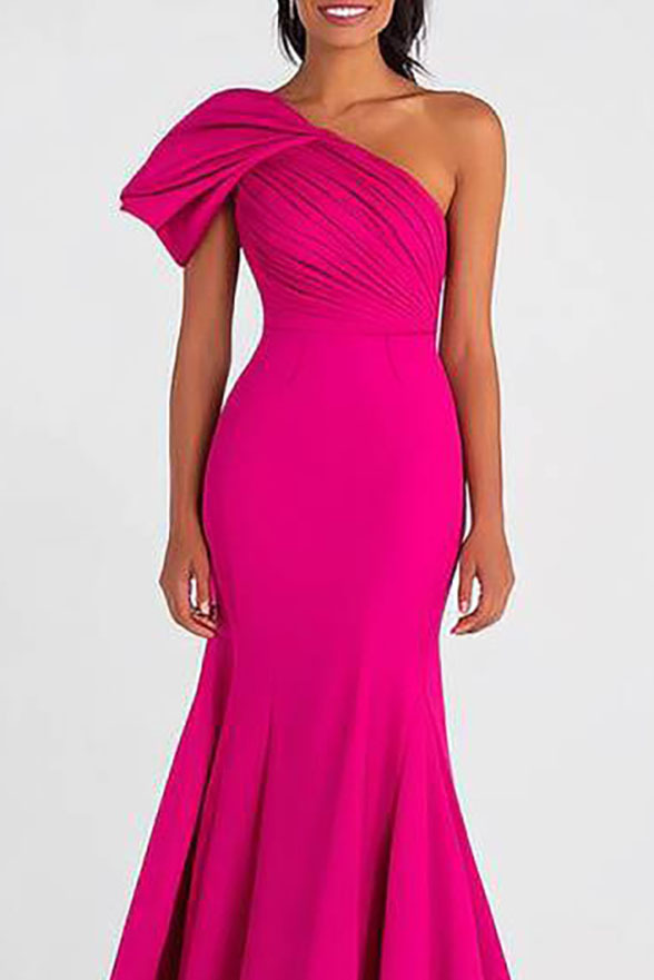 Formal Prom Dress One-Shoulder Fuchsia Mermaid Maxi Dress