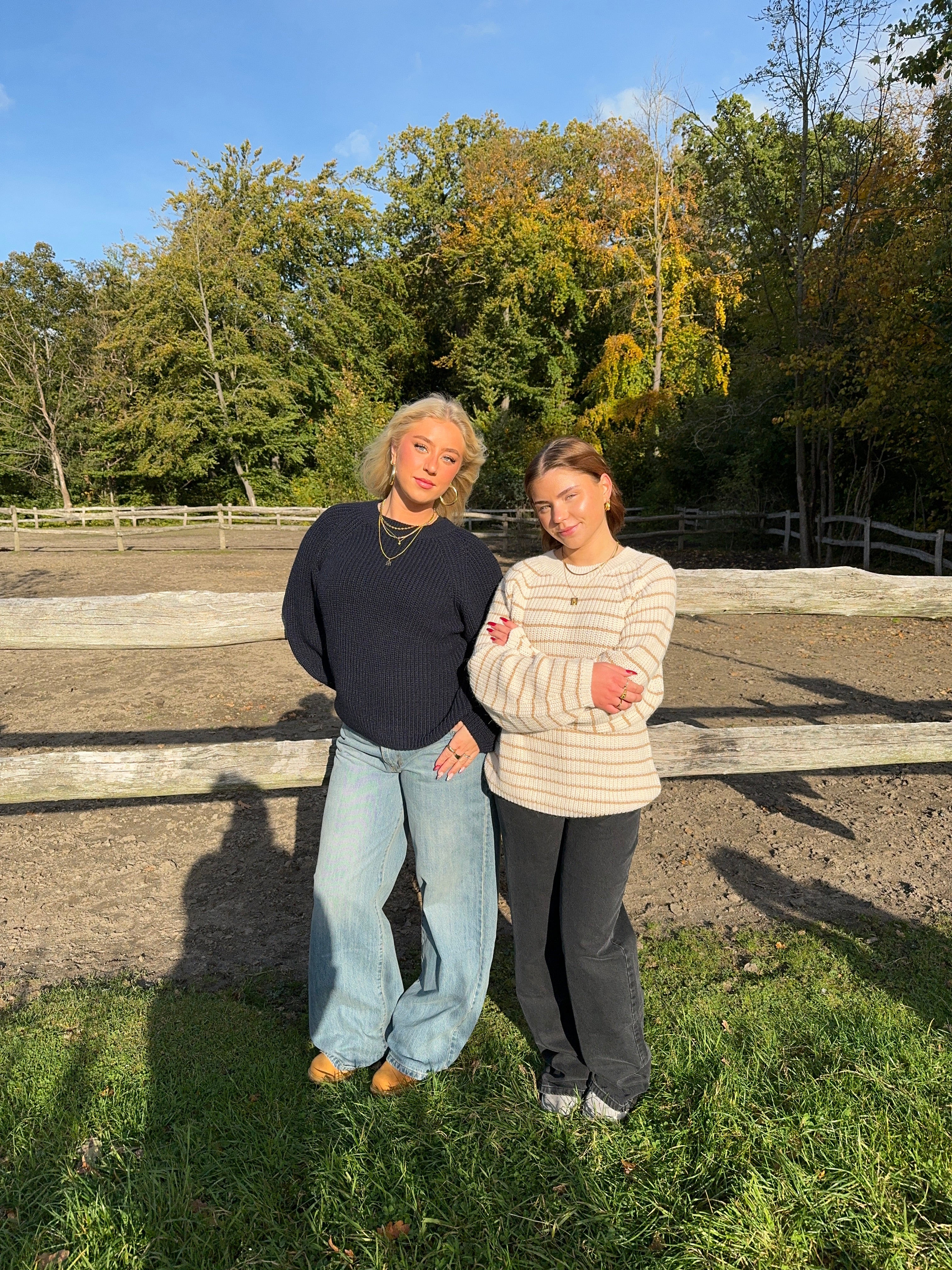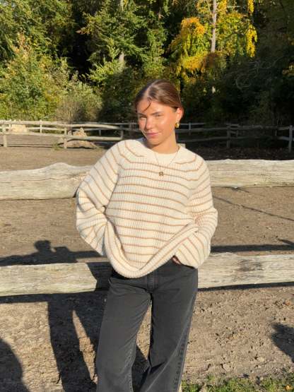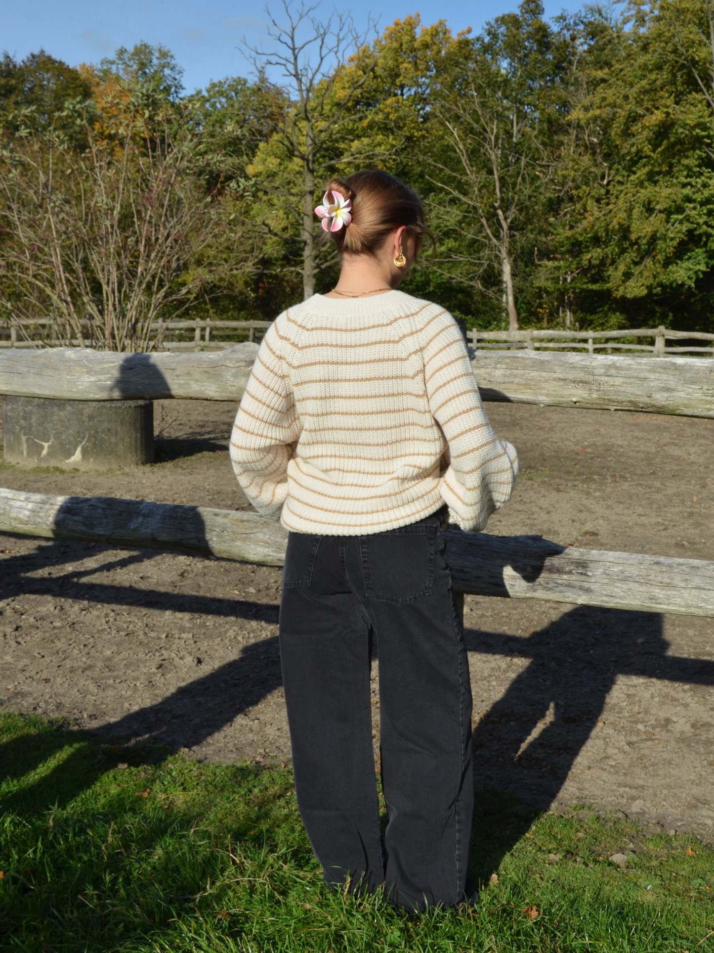 Glendy | Women’s striped knit sweater with balloon sleeves