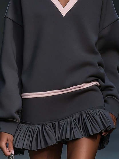 Gray Dress With Blush Accents And Pleated Hem