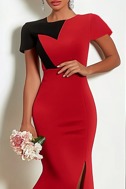 Turn heads in this Red Crew Neck Asymmetrical Slit Mermaid Maxi Dress, designed for parties, weddings, and special occasions. The classic crew neckline balances the bold asymmetrical slit, creating an elegant yet modern look. Its mermaid silhouette enhances feminine curves while offering graceful movement, making it an excellent choice for the mother of the bride or any formal evening celebration. Crafted with attention to detail, this dress delivers timeless sophistication and standout style.