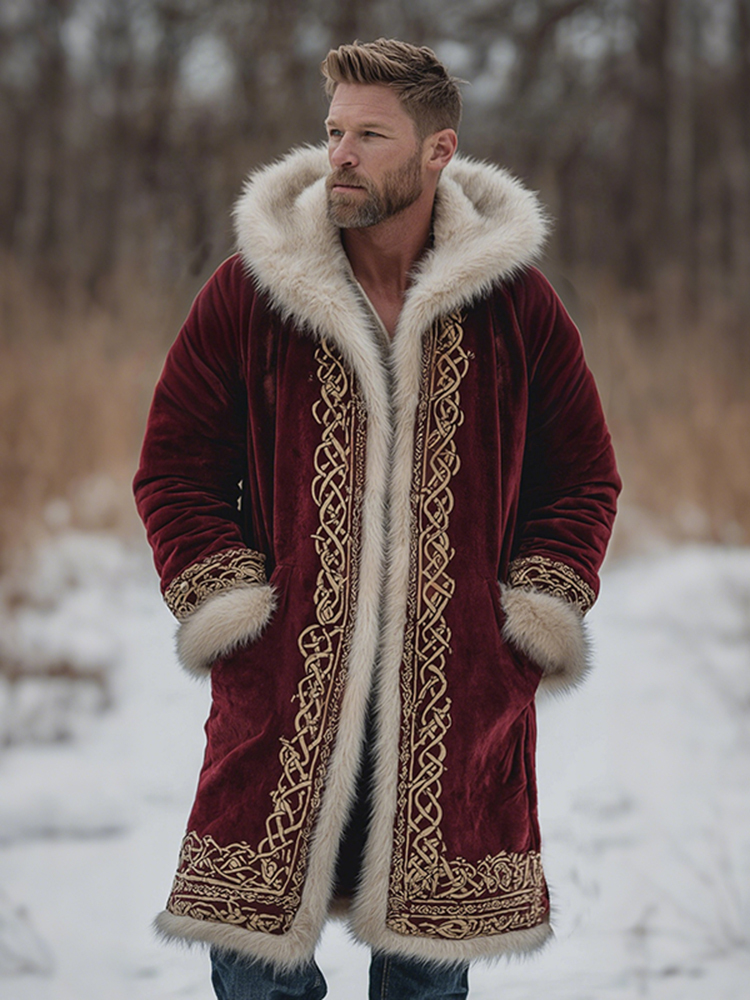 Men's Christmas Santa Celtic Fuzzy Velvet Hooded Coat
