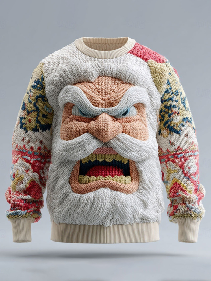 Men's Funny Christmas Santa Claus Ugly Knit Pullover Sweater
