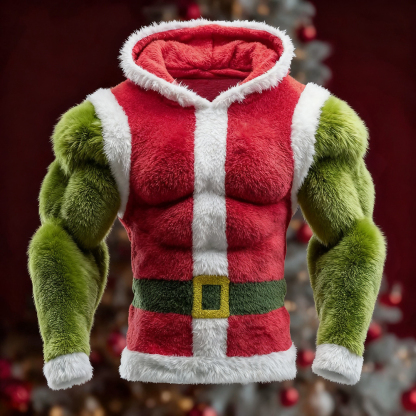 Men's Muscle Line Art Christmas Inspired Cozy Plush Hoodie