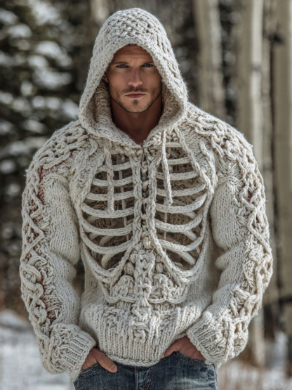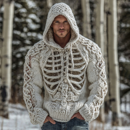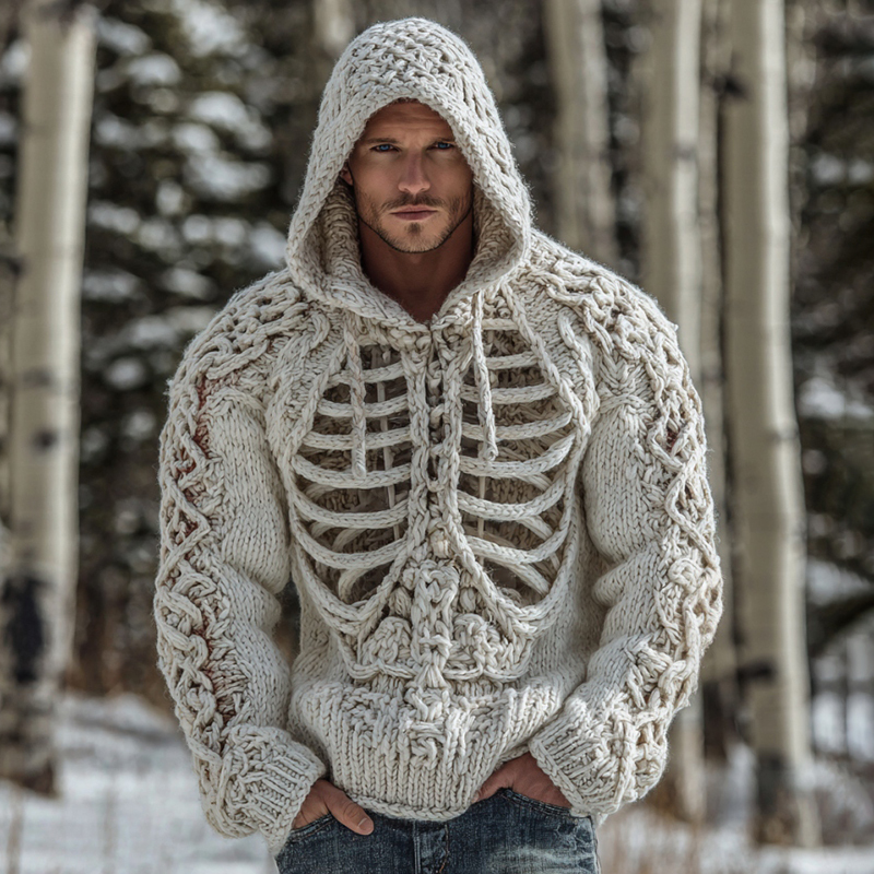 Men's Retro Viking Tribal Celtic Skull Art Knit Jacquard Warm Sweater