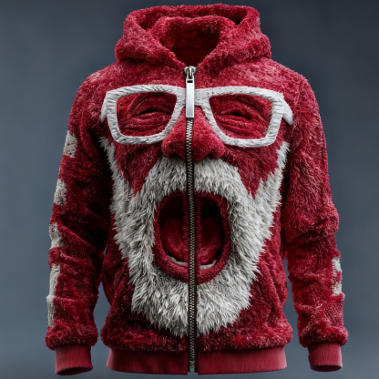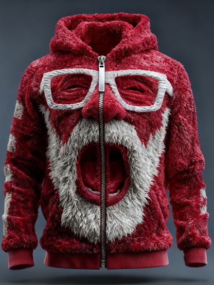 Men's Santa Claus Party Flannel Zip-up Hoodie