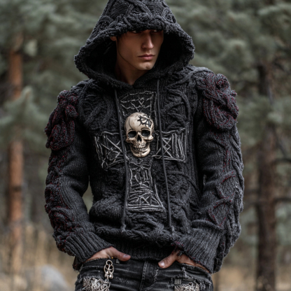 Men's Skeleton Cross Art Celtic Coarse Needle Sweater