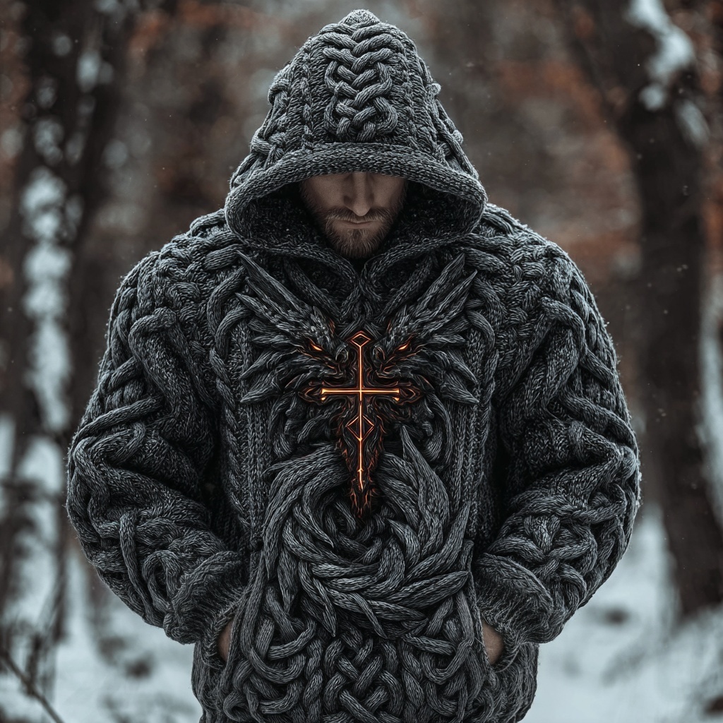 Men's Viking Celtic Dragon Chunky Hooded Sweater