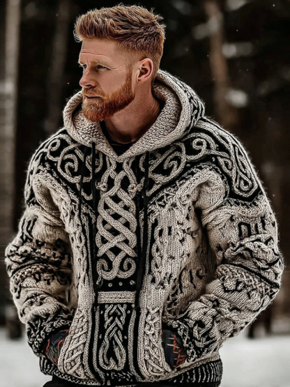 Men's Viking Celtic Knot Color Block Cozy Casual Hooded Sweater