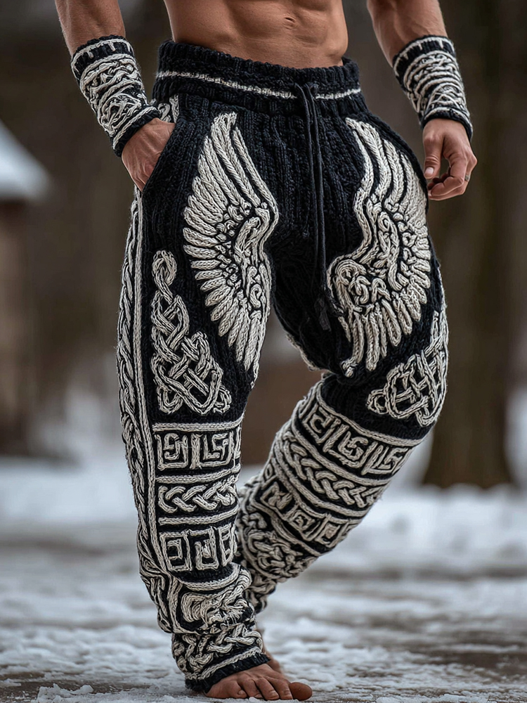 Men's Viking Celtic Knot With Wings Art Knitted Jacquard Thermal Pants