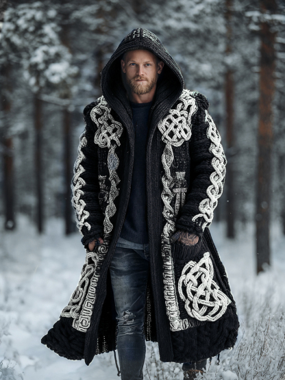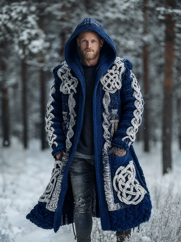 Men's Viking Intricate Celtic Knot Colorblock Pocket Mid-length Cardigan Sweater