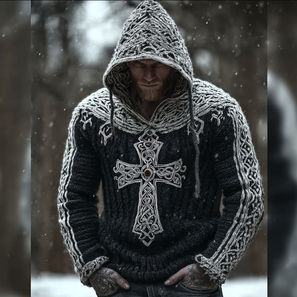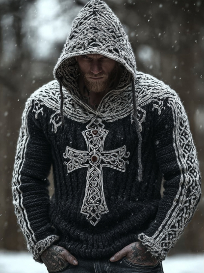 Men's Viking Style Celtic Cross Hooded Sweater