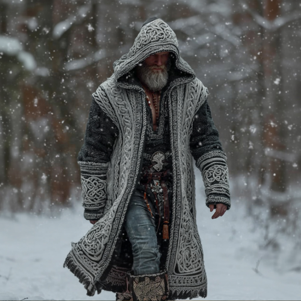 Men's Viking Style Celtic Knot Thick Wind Thick Needle Hooded Cardigan Sweater