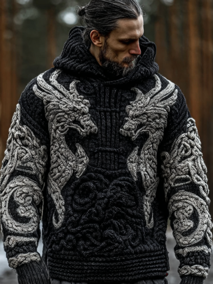Men's Viking-style Winter Warm Hooded Knitted Sweater