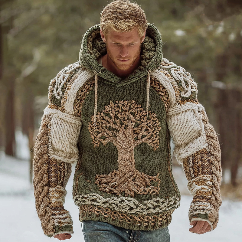 Men's Viking Tree Of Life Celtic Knot Art Knit Hooded Sweater