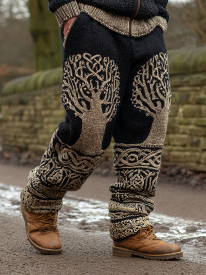 Men's Viking Tribal Celtic Knot World Tree Art Cozy Knit Pants